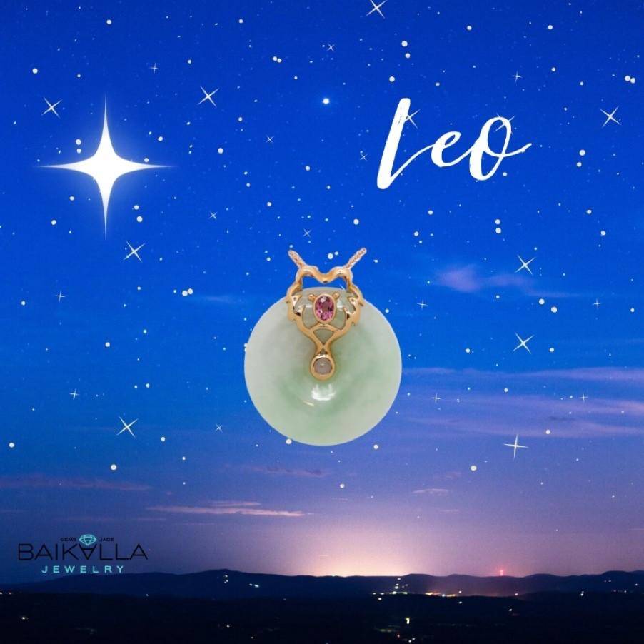 18k Rose Gold Genuine Jadeite Constellation (Leo) Necklace Pendant with Tourmaline