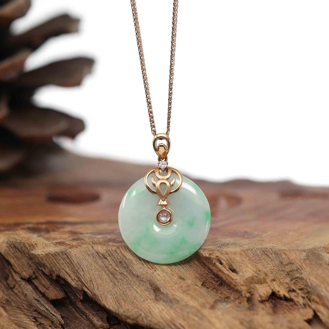 Baikalla Jewelry Gold Jadeite Pendant Pendant Only 18k Rose Gold Genuine Jadeite Constellation (Taurus) Necklace with Diamonds