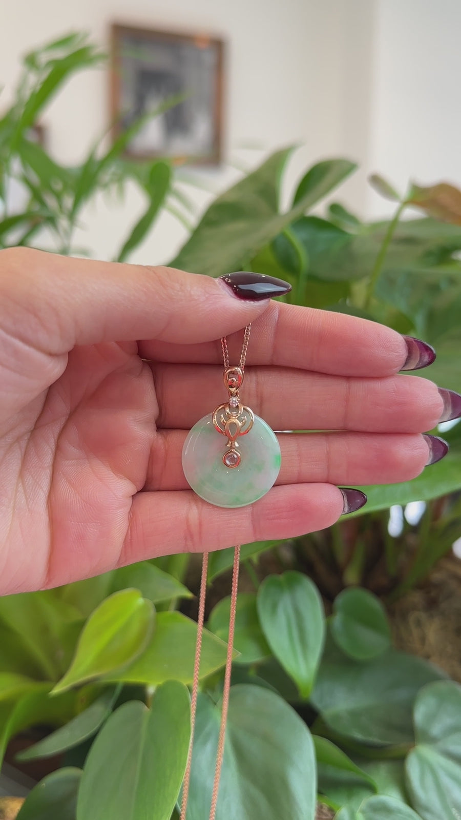 18k Rose Gold Genuine Jadeite Constellation (Taurus) Necklace with Diamonds