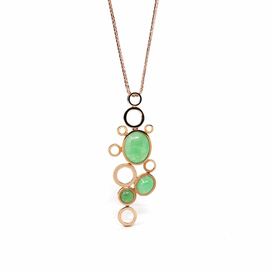 18k Rose Gold Jadeite Jade Diamond Bubble Pendant Necklace