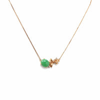 18k Rose Gold Jadeite Jade Diamond Pendant Necklace Ginkgo Leaf