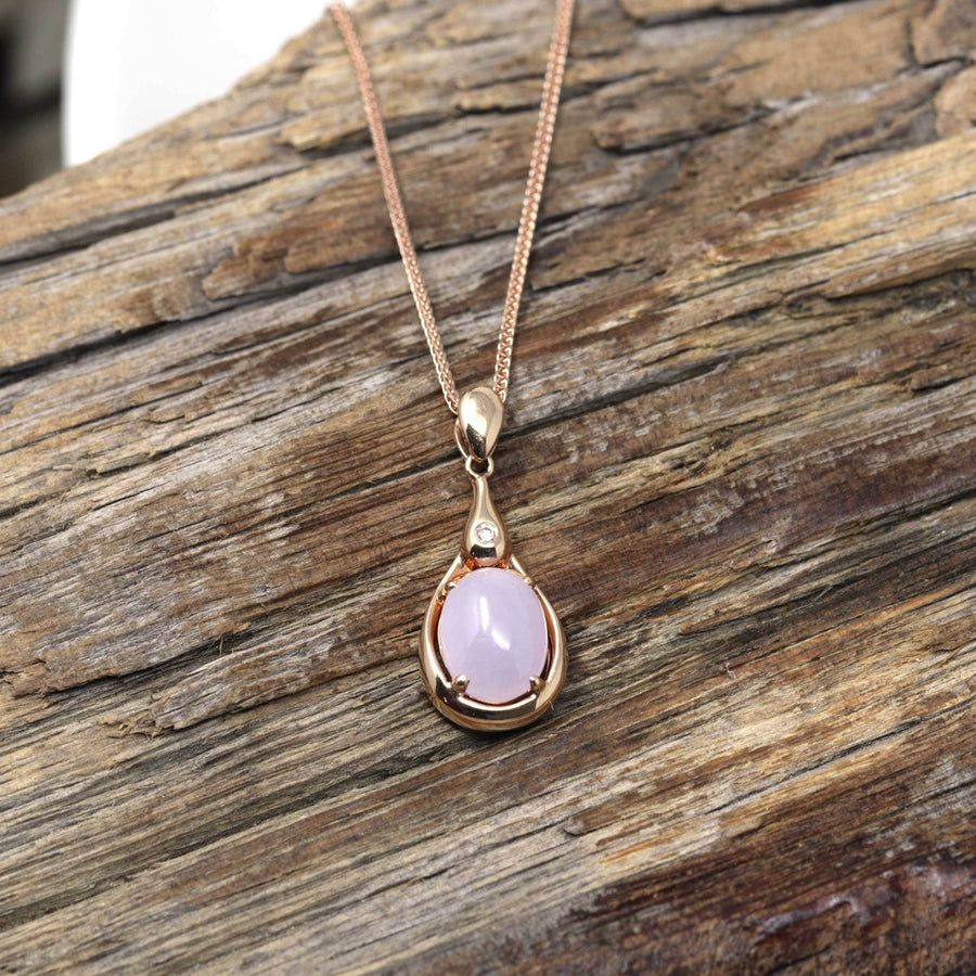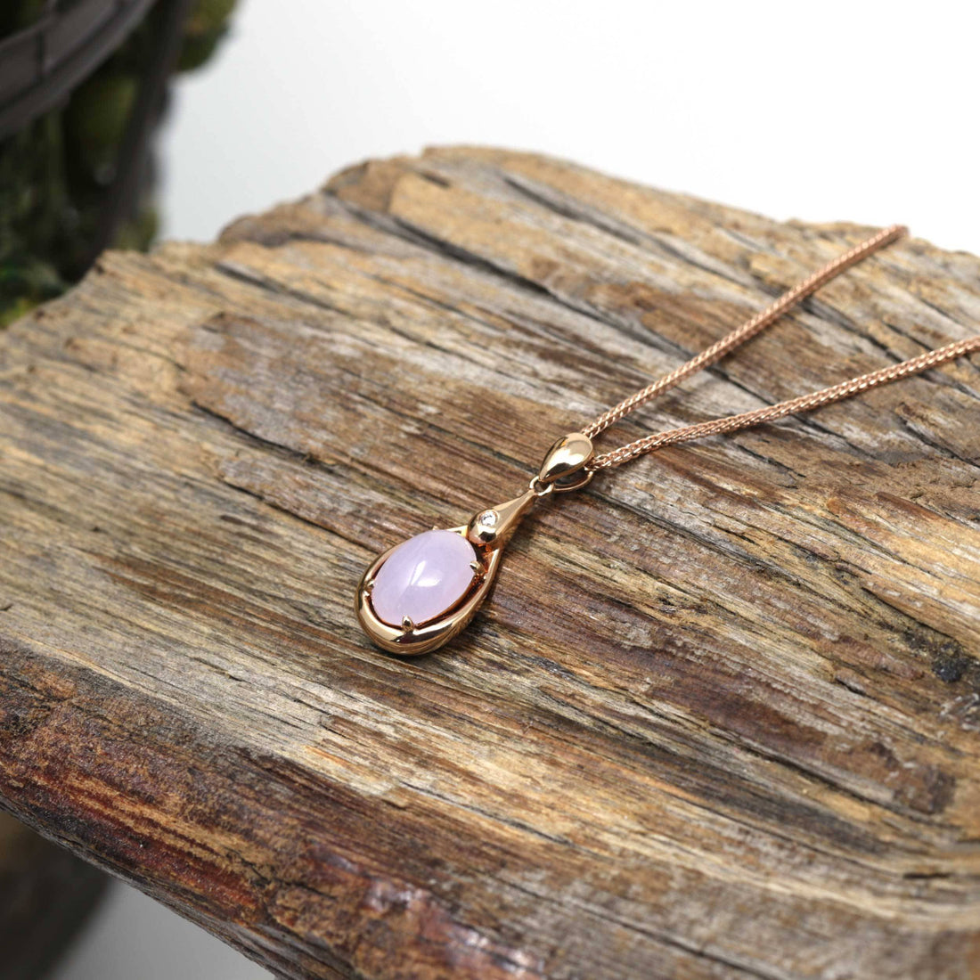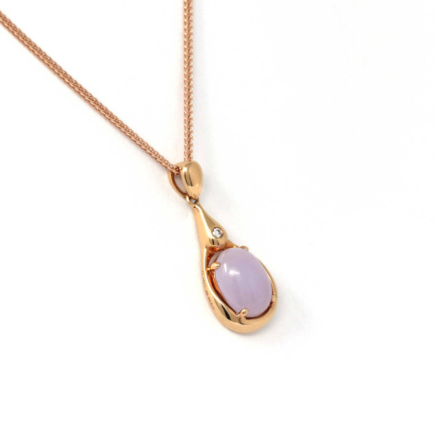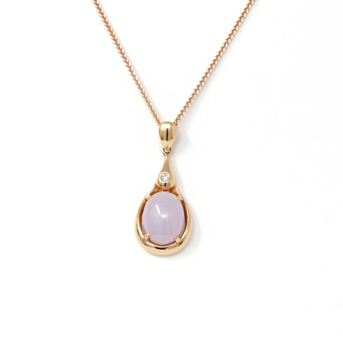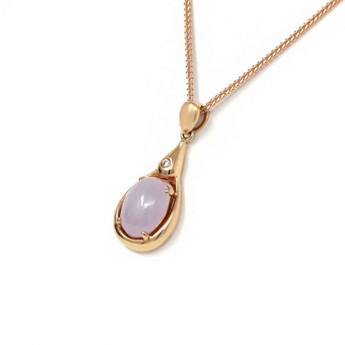 18k Rose Gold Lavender Jadeite jade Diamond Pendant Necklace