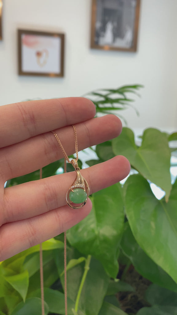 18K Rose Gold Oval Imperial Jadeite Jade Cabochon Necklace with Diamonds