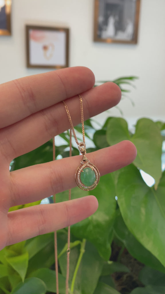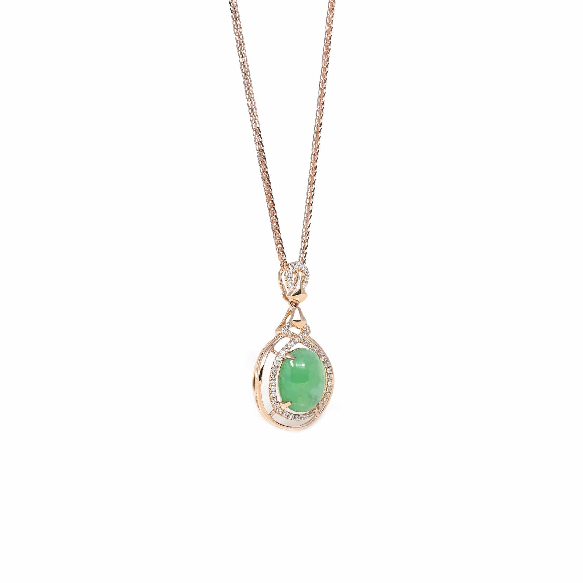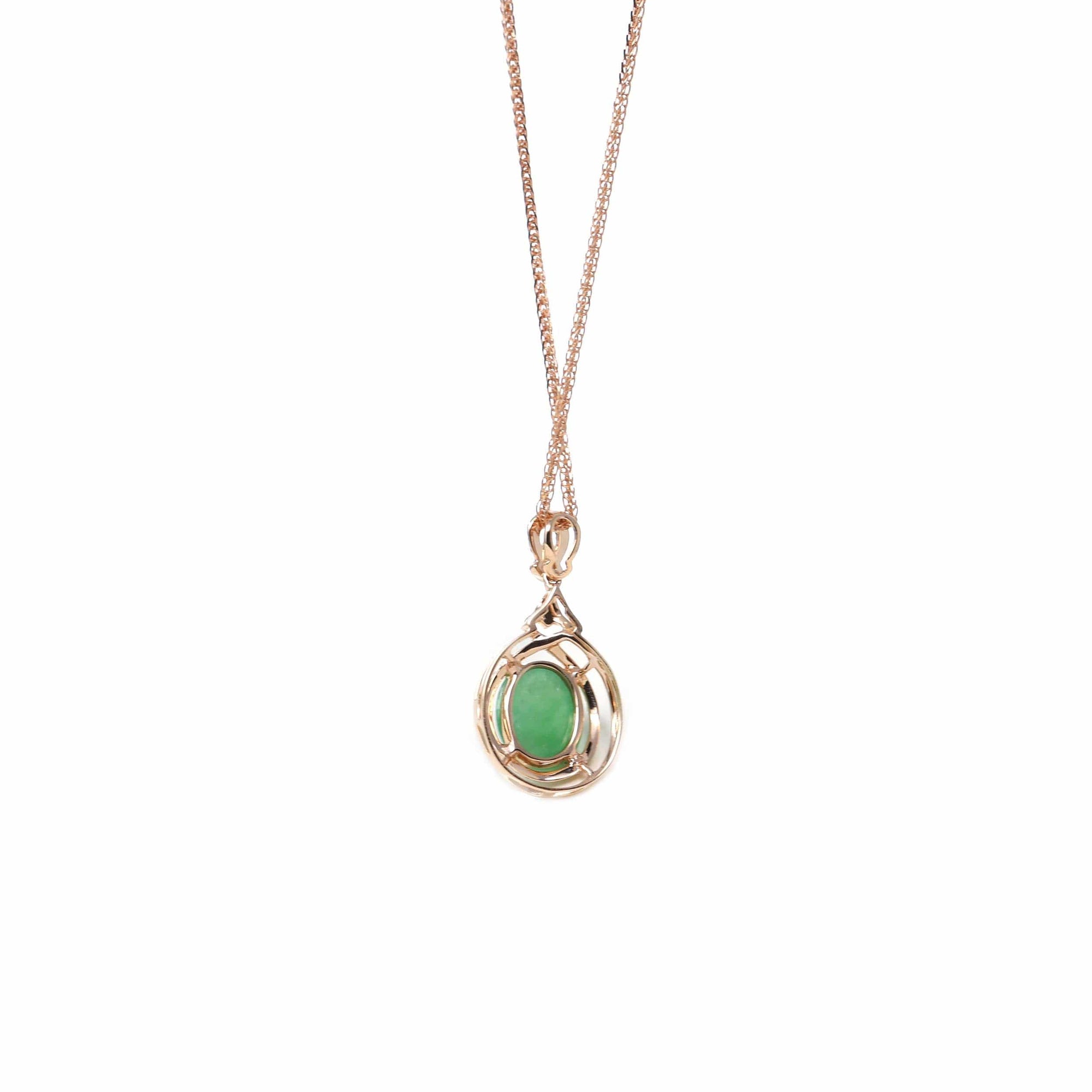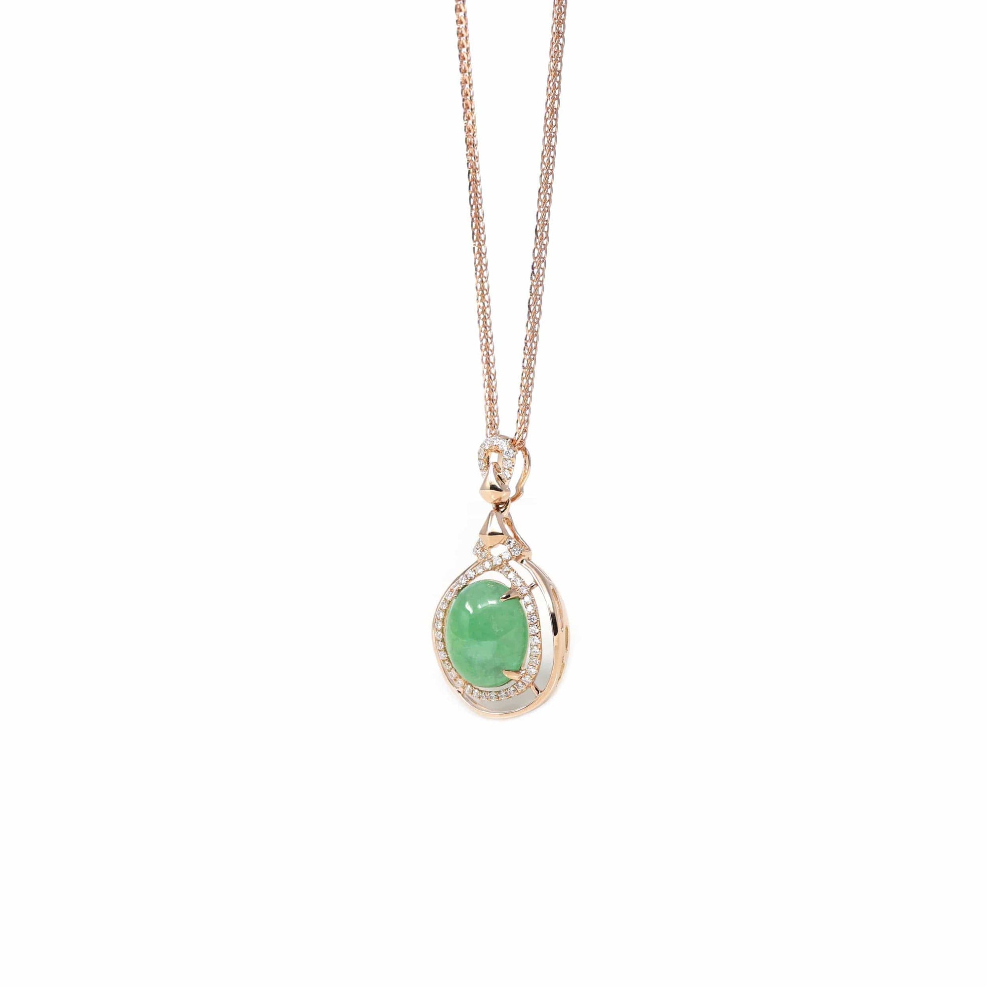 18K Rose Gold Oval Imperial Jadeite Jade Cabochon Necklace with Diamonds