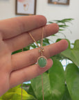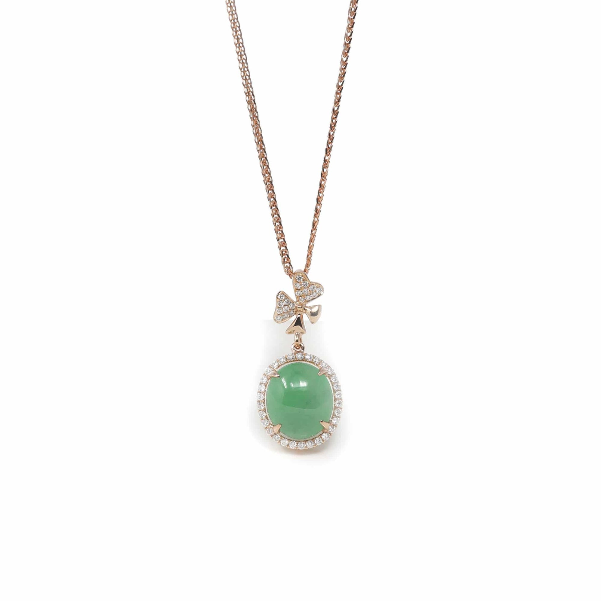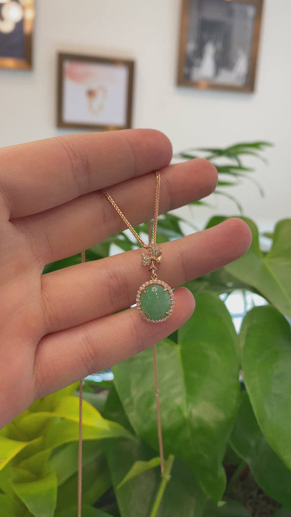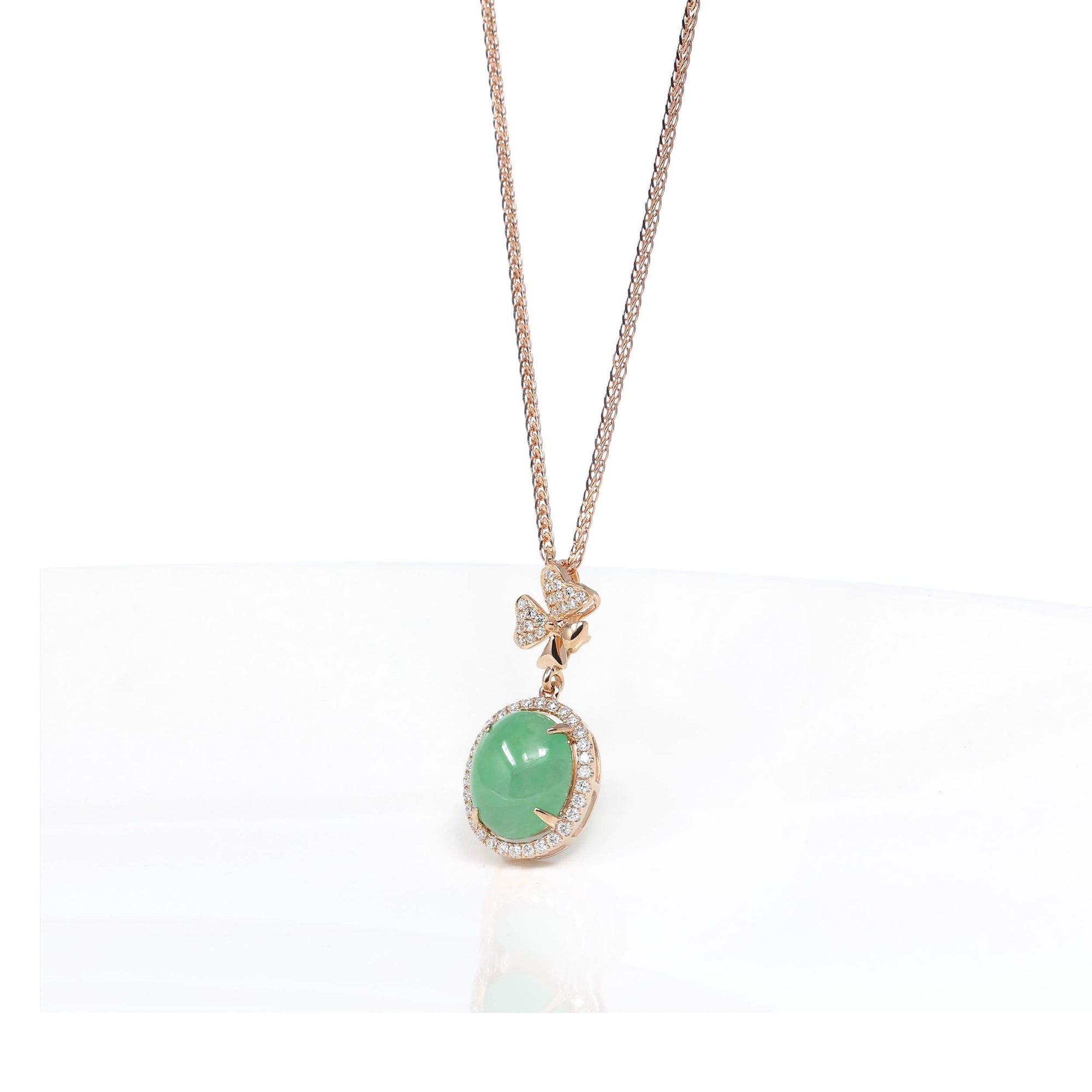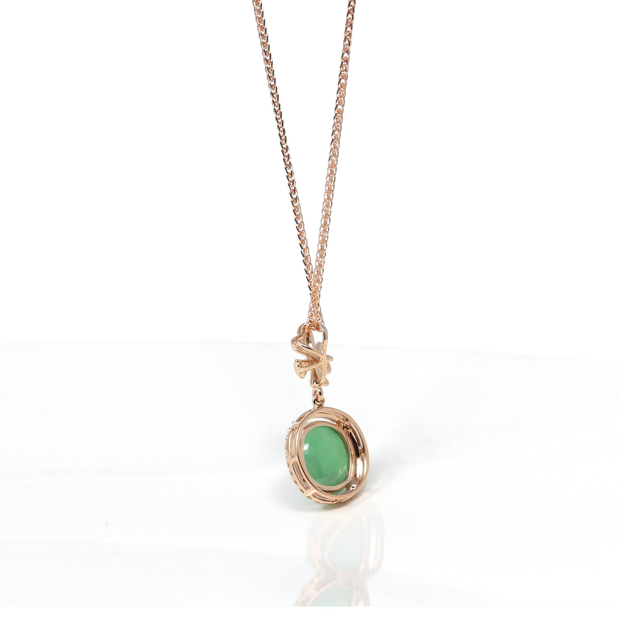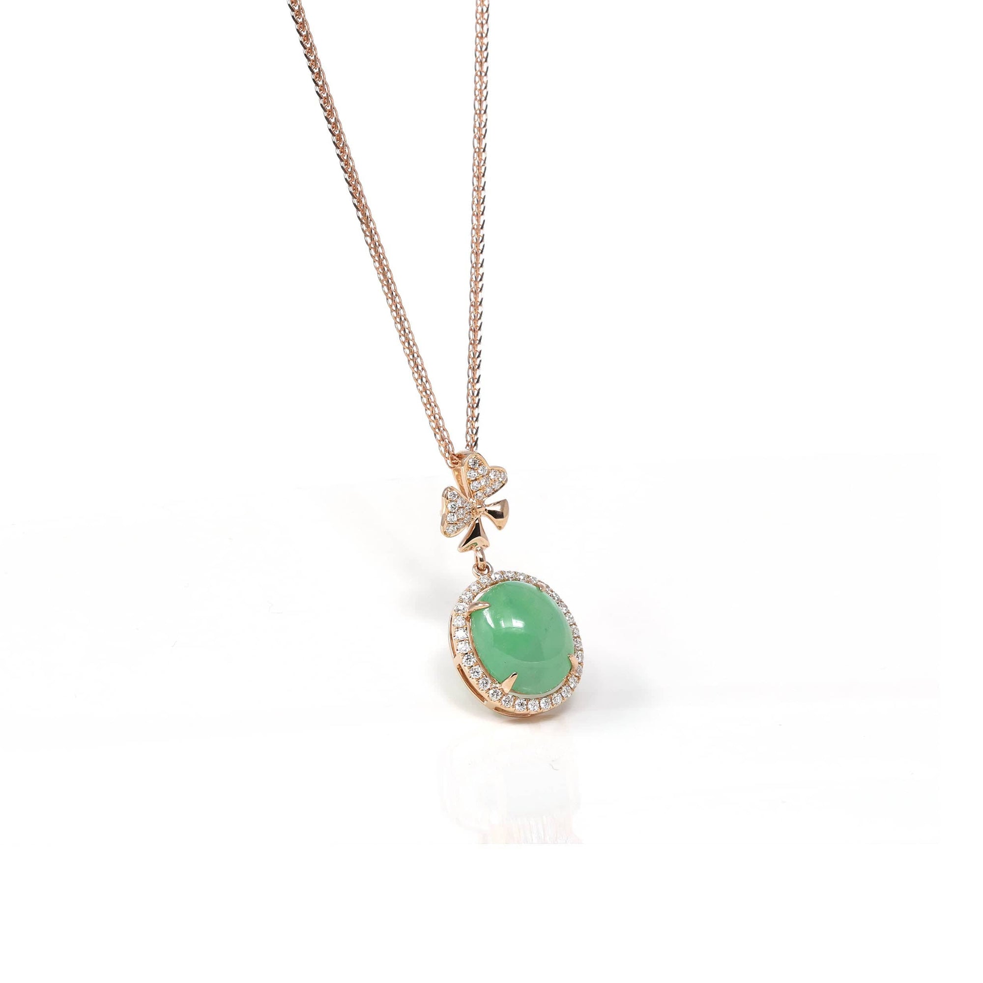 18K Rose Gold Oval Imperial Jadeite Jade Ginkgo Leaf Necklace with Diamonds