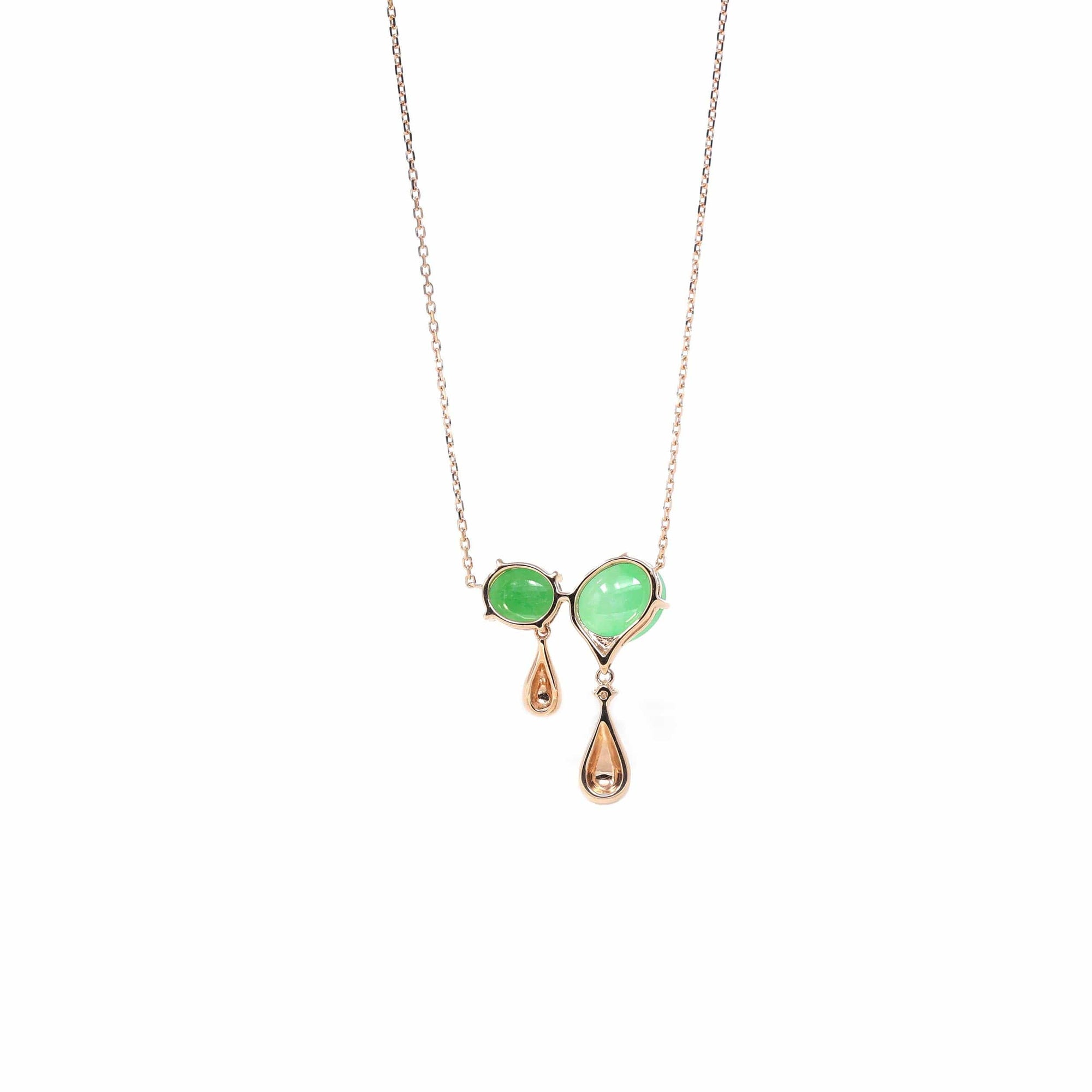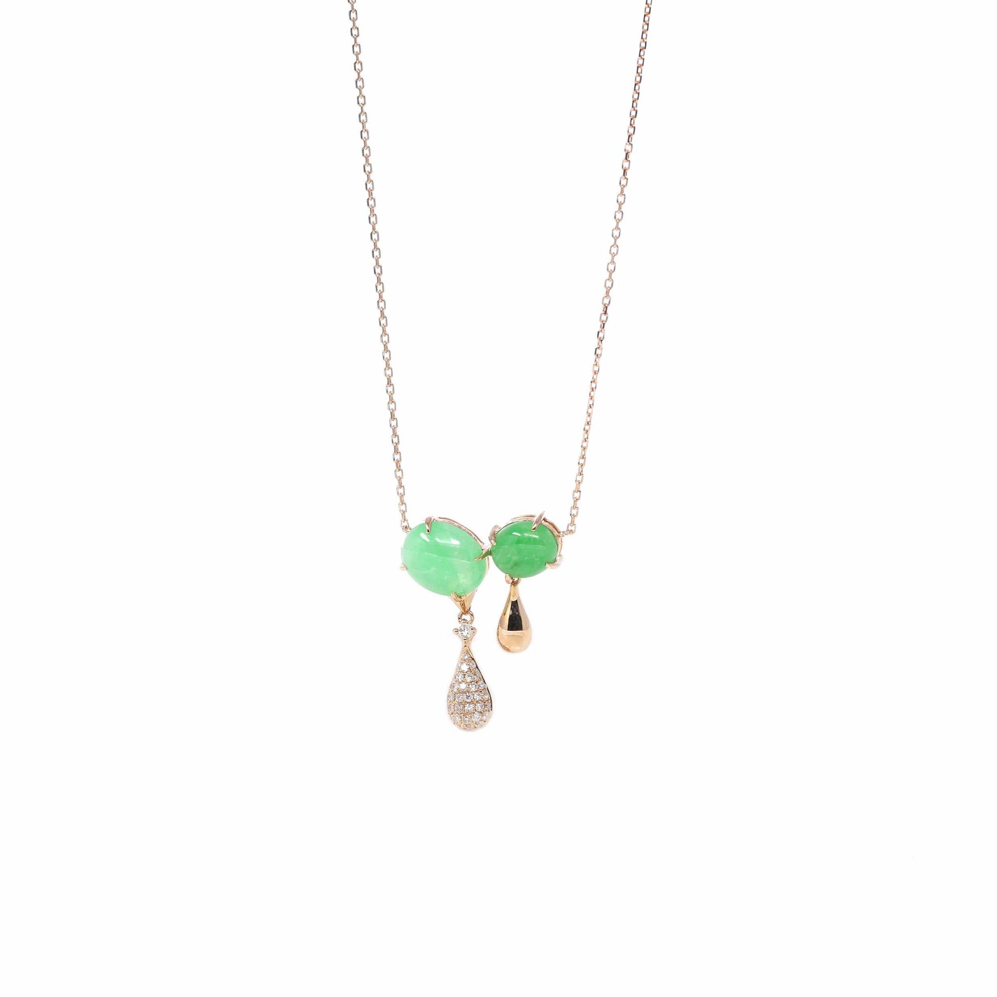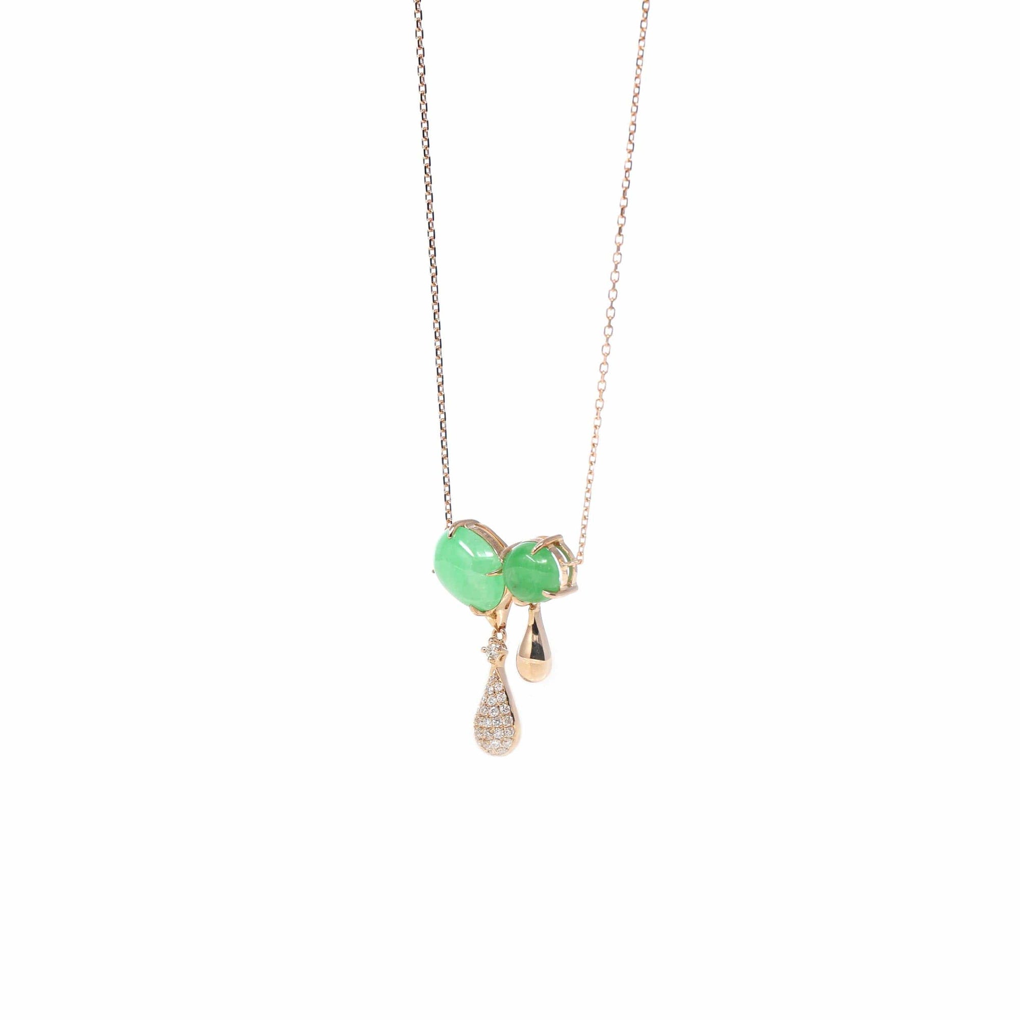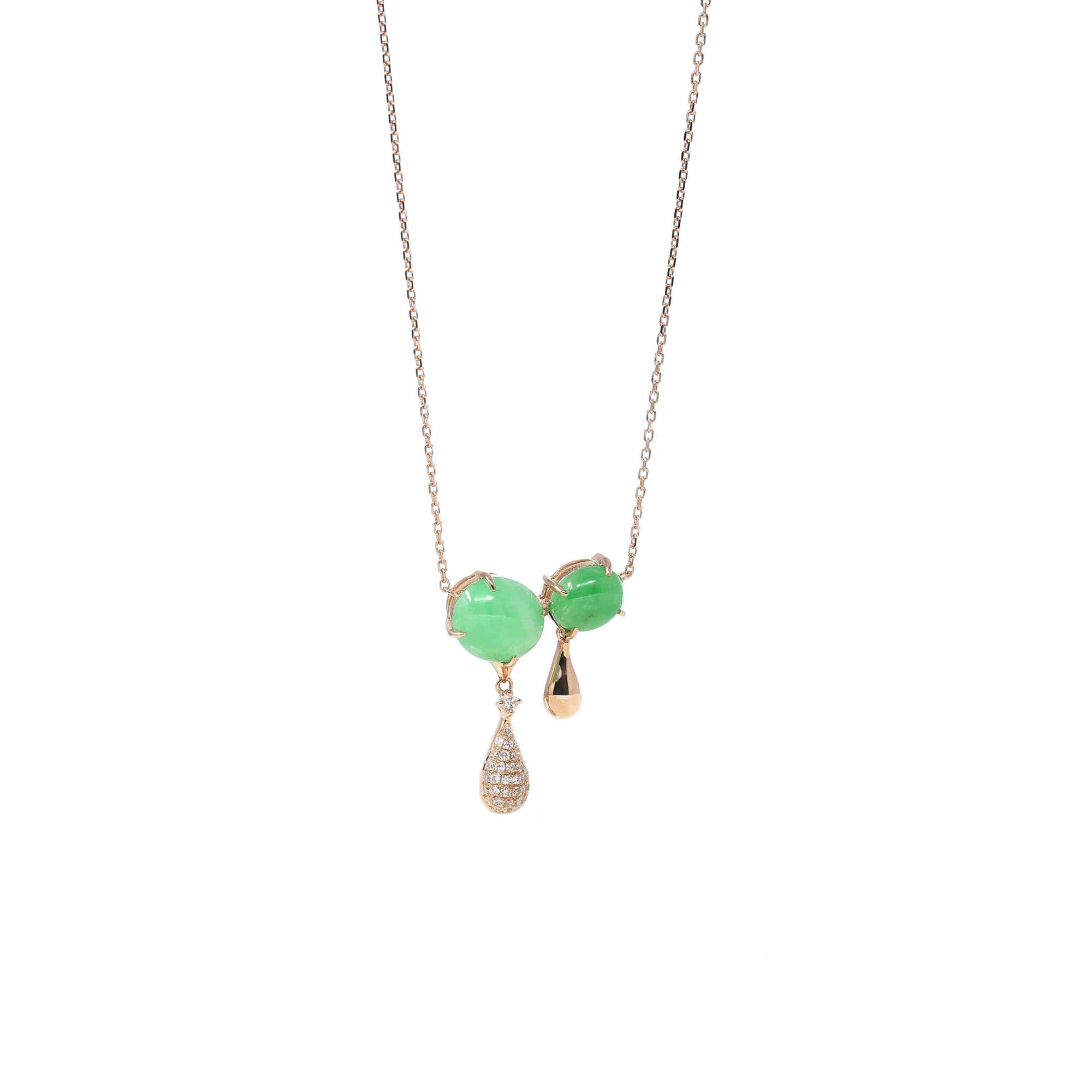 18K Rose Gold Oval Imperial Jadeite Jade Water Drop Necklace with Diamonds