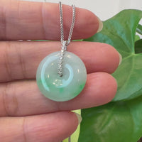 18K White Gold "Good Luck Button" Necklace Ice Green Jadeite Jade Pendant Necklace