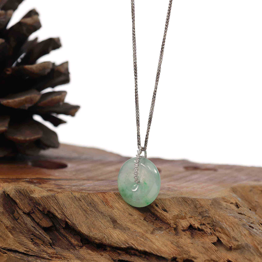 * Design Concept--- The simple shape of a circle represents things such as happiness, wholeness, and prosperity. This necklace is made with very high-quality genuine Burmese ice green jadeite jade. the necklace with Ice Green Jadeite Jade Pendant is an embodiment of style, cultural connection, and positive energy. Adorn yourself with this exquisite piece, and let it be a constant reminder of balance, well-being, and the timeless allure of meaningful jewelry. Gifting one of these is like wishing the best of luck to your family or loved ones. It's a significant gift.