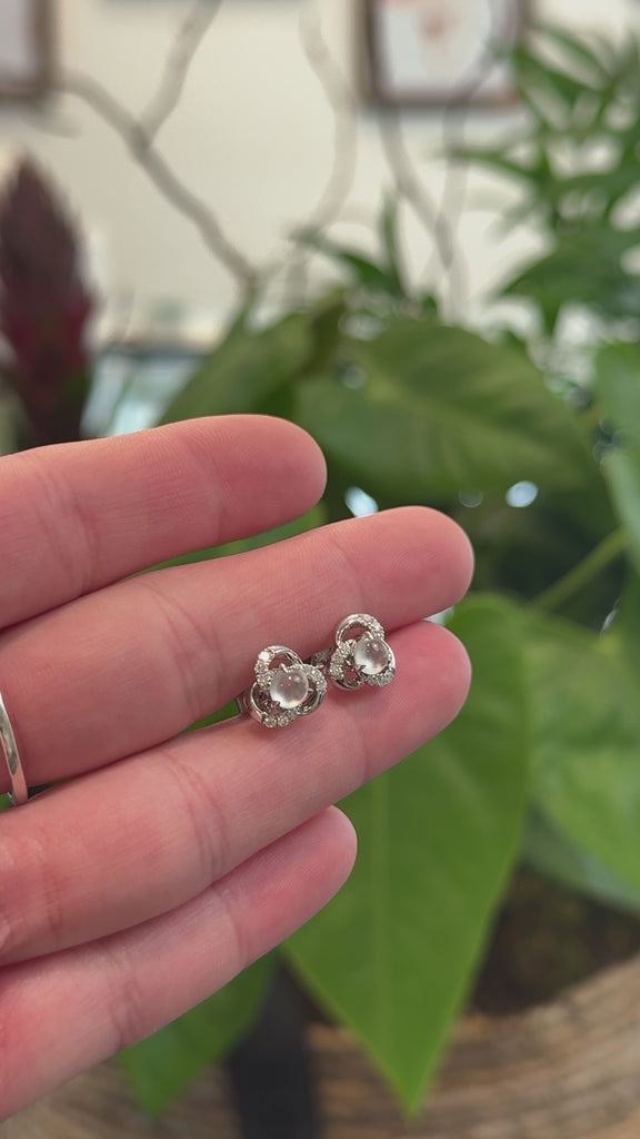 18K White Gold Ice Jadeite Jade Stud Earrings