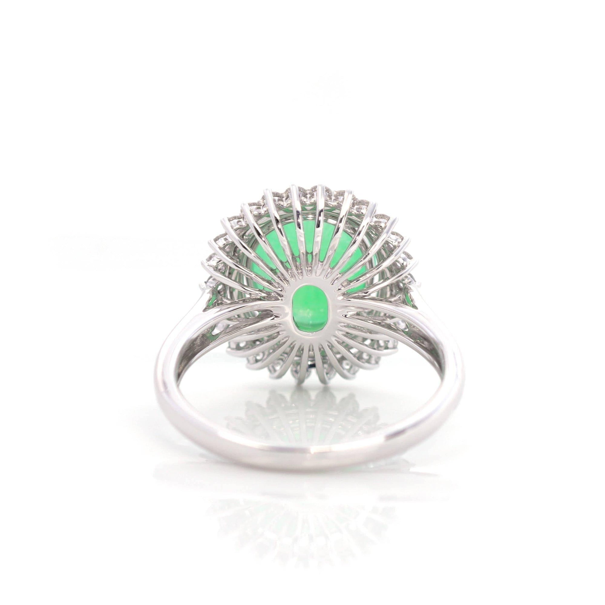 18k White Gold Natural Imperial Green Jadeite Engagement Ring With Diamonds