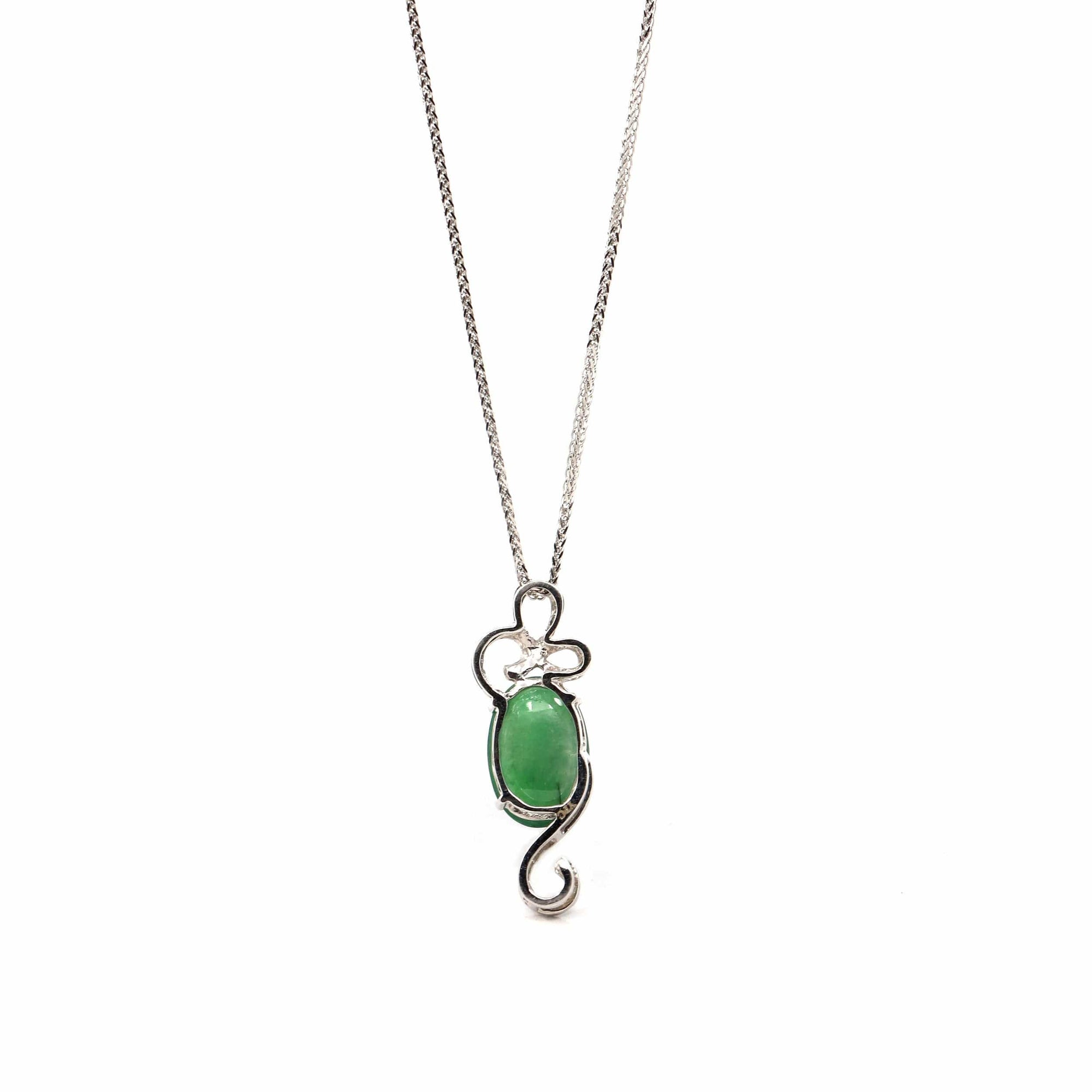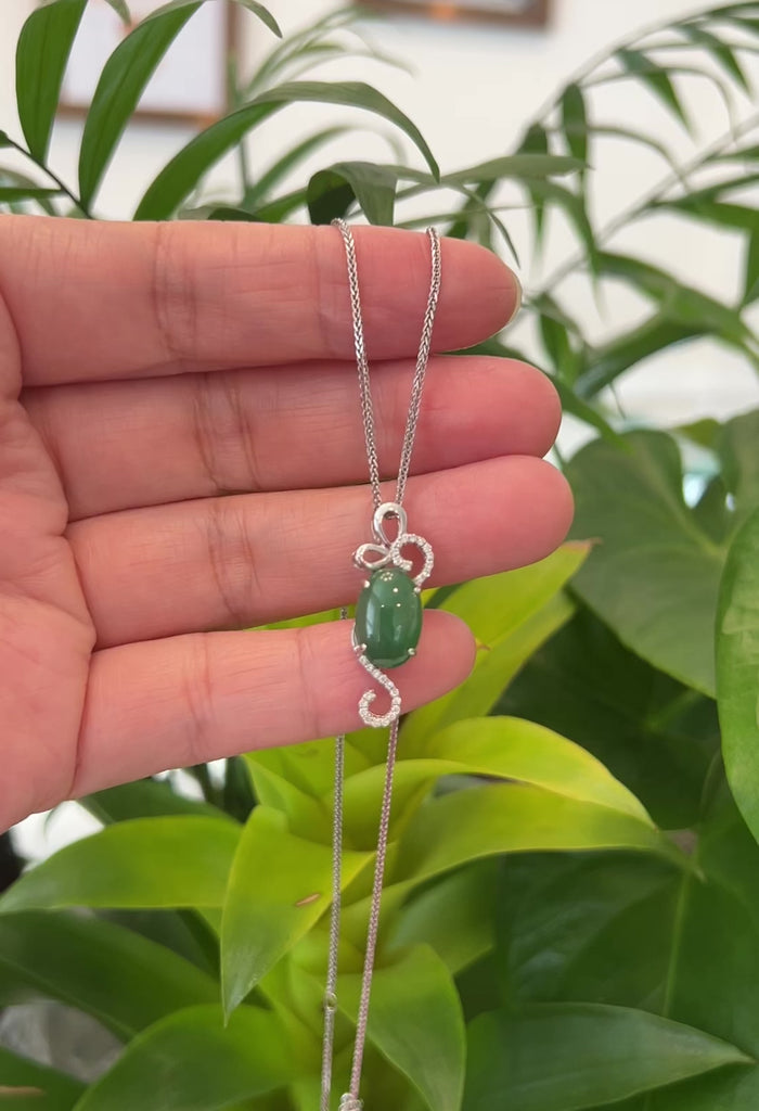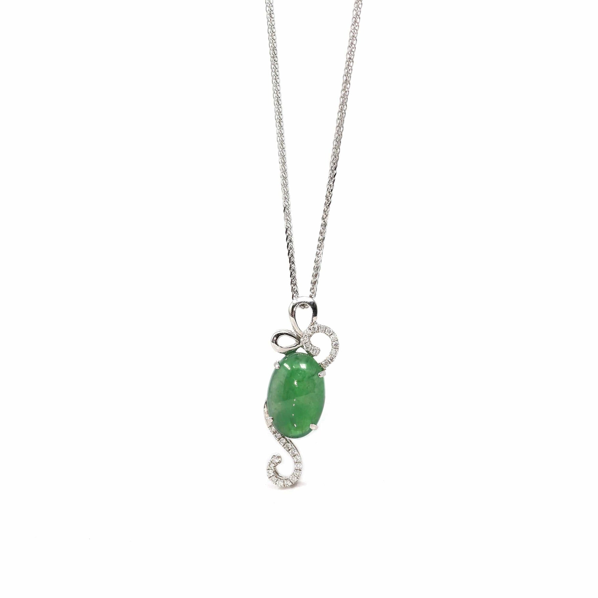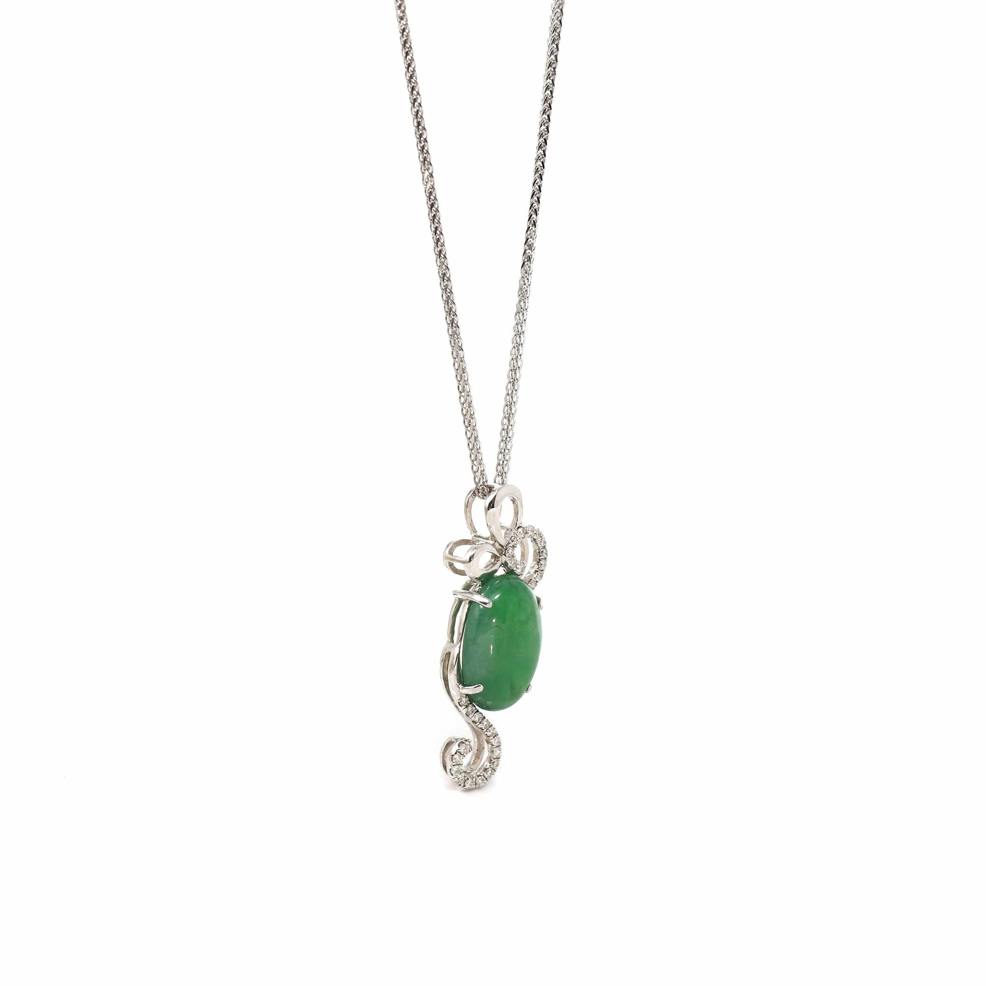 18K White Gold Oval Imperial Jadeite Jade Cabochon Necklace with Diamonds