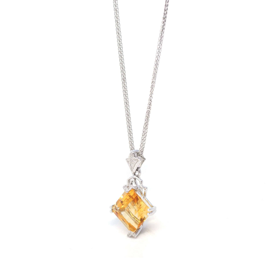 18k White Gold Princess Cut AA Citrine Necklace With Diamonds