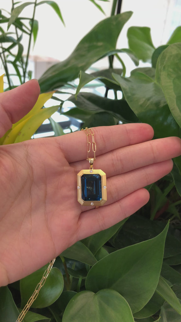 * ORIGINAL DESIGN----- This pendant is made with high-quality genuine AAA nice navy blue elongated cushion topaz & genuine SI diamonds. Classic yet fashionable. The luxury natural navy blue topaz. The style is simple and luxurious. The angles and lines are so beautiful with link chain. It's a perfect gift for yourself and your love.