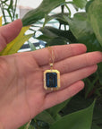 18k Yellow Gold Natural Navy Blue Topaz Emerald Necklace With Diamonds