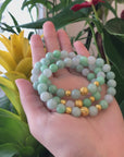 * INTRODUCTION----Genuine Green Jadeite Jade Beads Bracelet With 24k Pure Yellow Gold Money Beads. This bracelet is made with very high-quality genuine green jadeite, The bead's texture is so smooth and translucent with green and lavender colors. The classic round beads bracelet looks completely beautiful and affordable. It's a high-quality and perfect gift for yourself or your love.