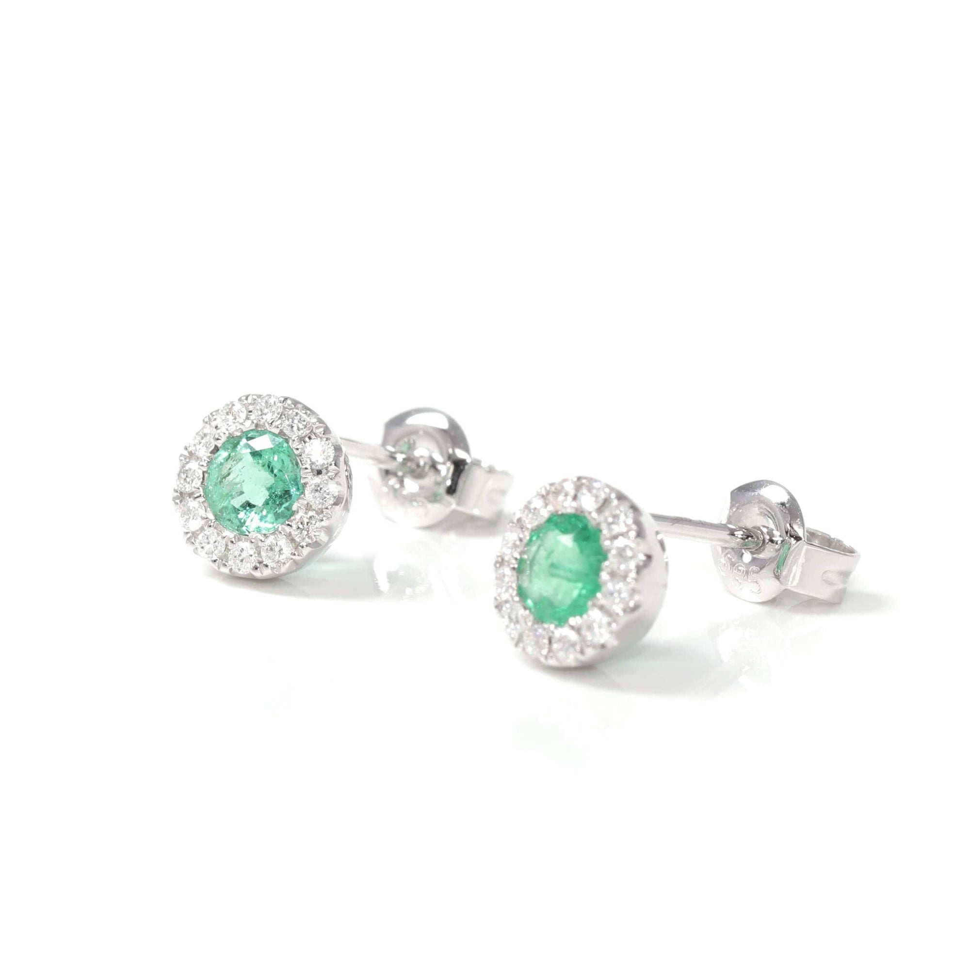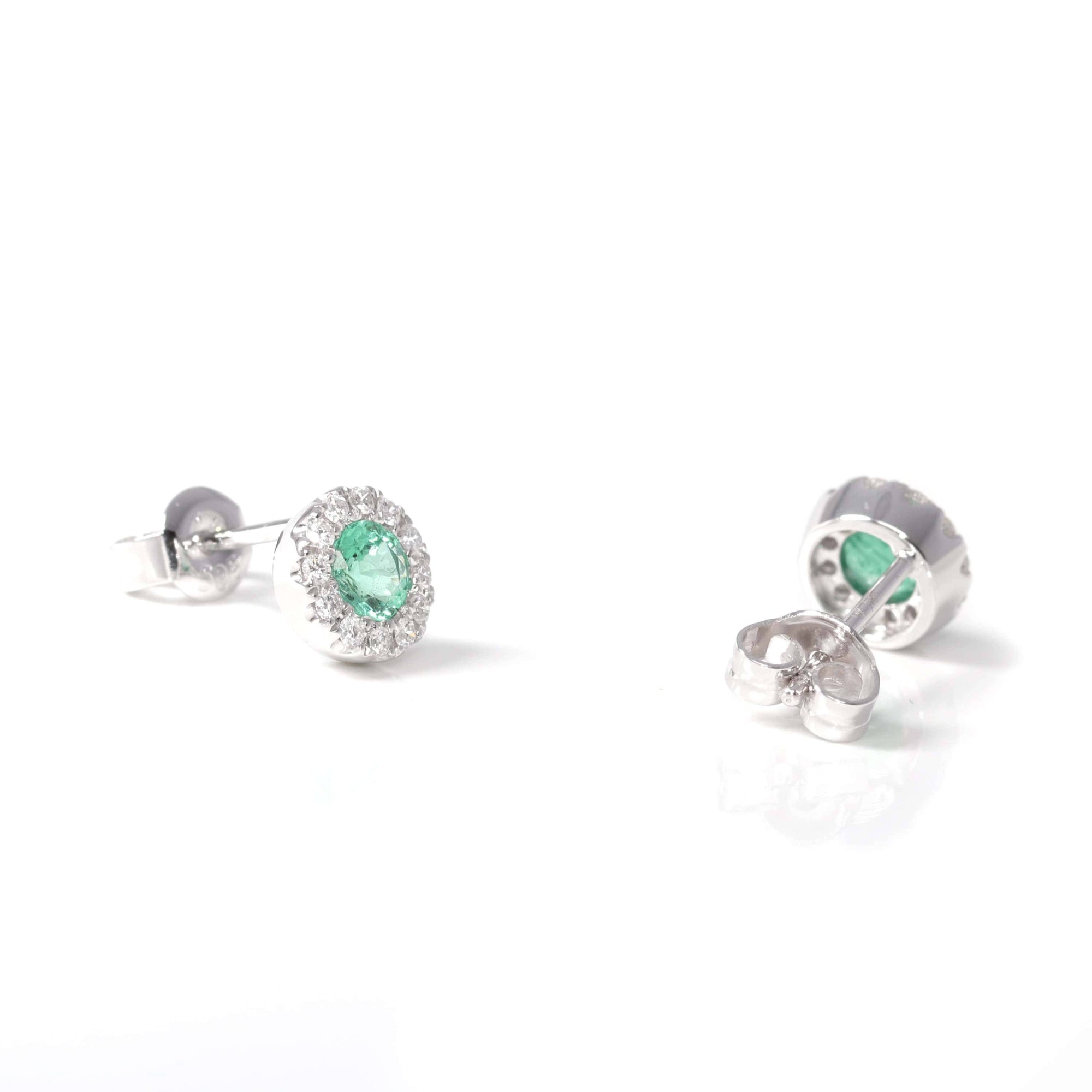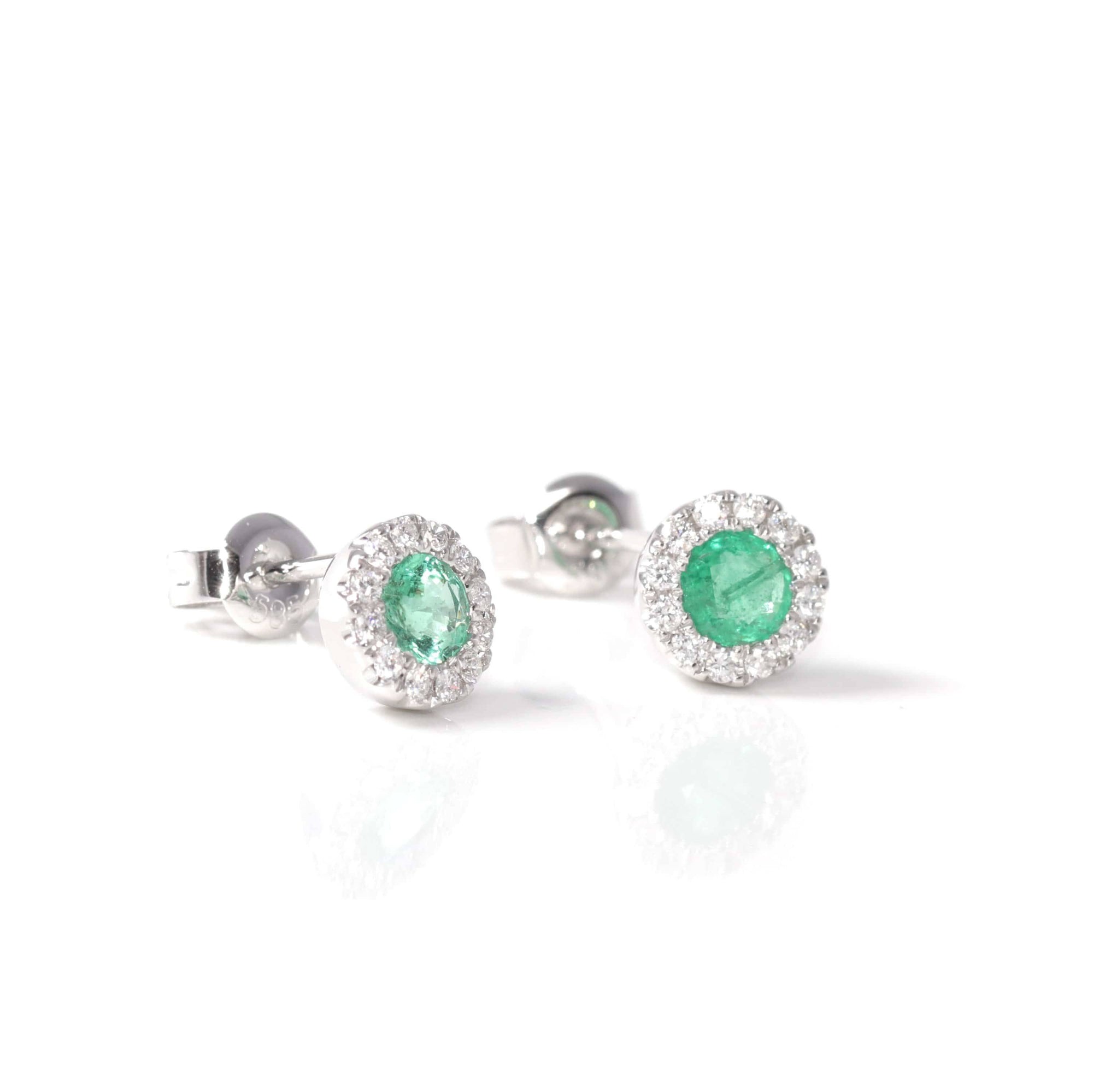Baikalla™ 14k Classic White Gold Natural Emerald Earrings w/Diamond Halo