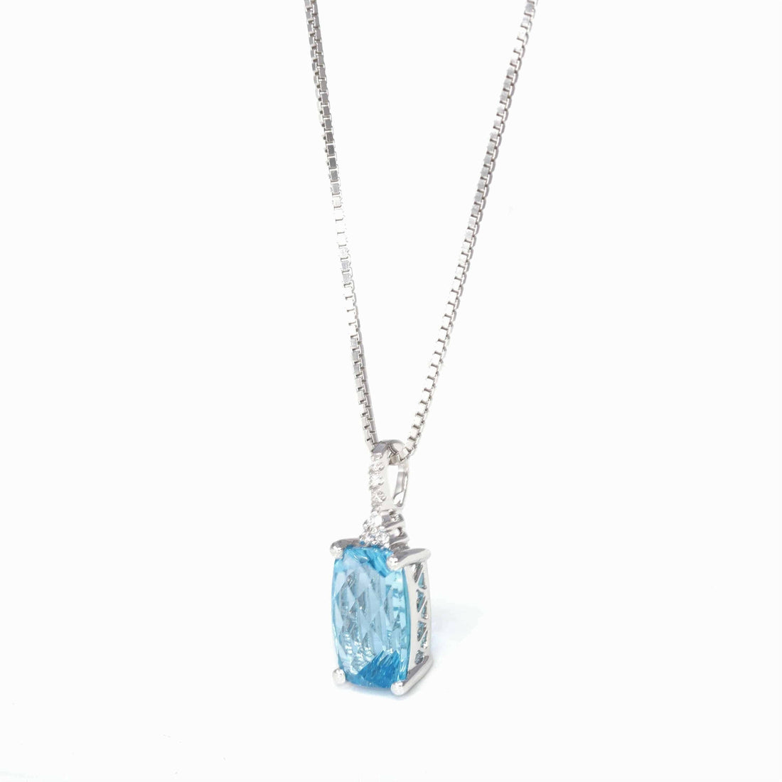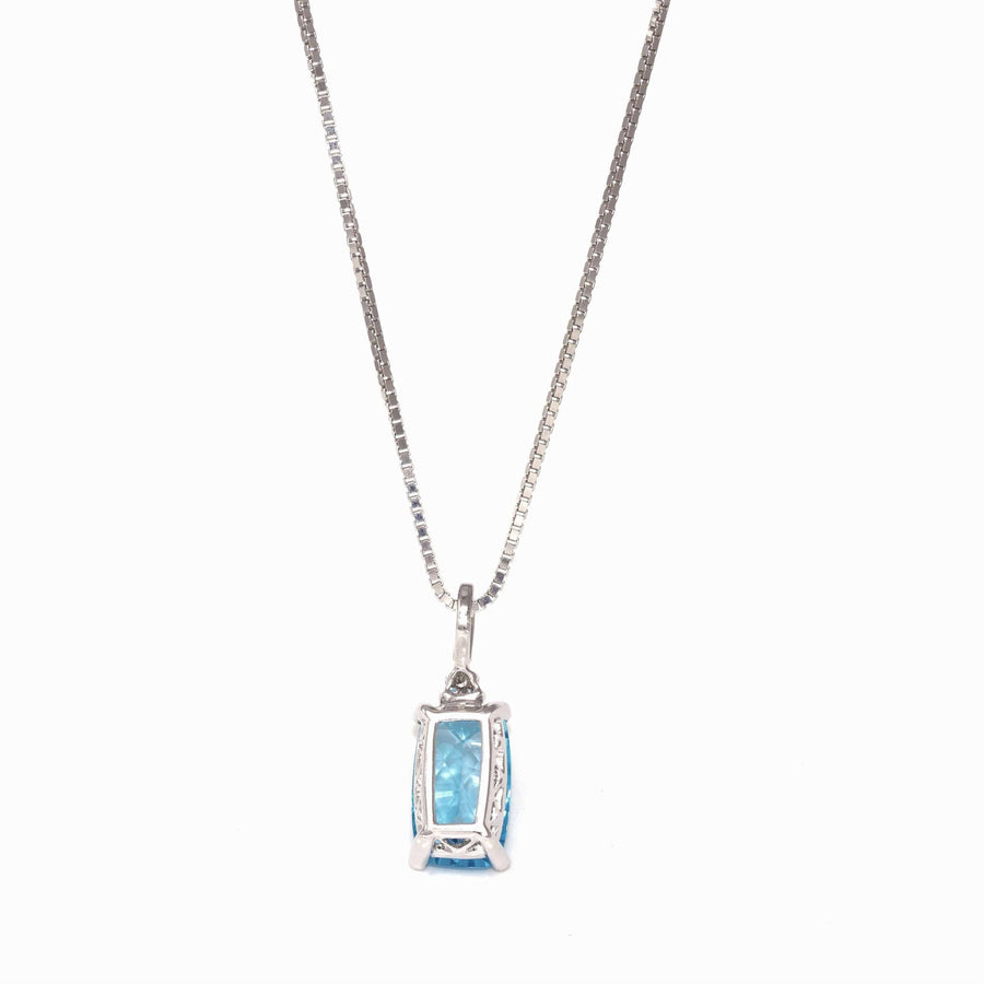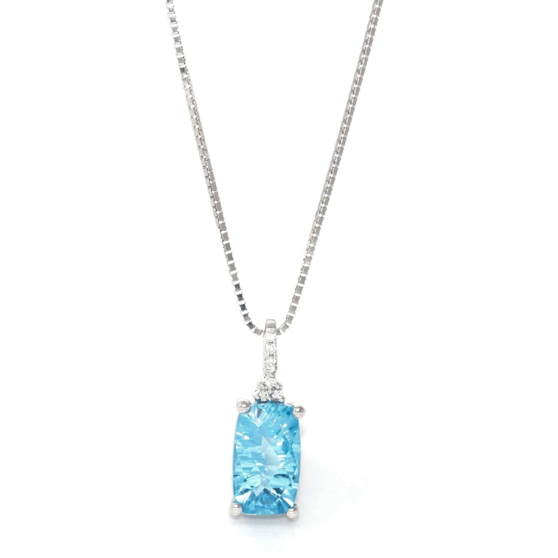 Baikalla Jewelry Gemstone Pendant Necklace Swiss Blue Topaz Baikalla™ 14k White Gold Natural Topaz Prong Set Necklace With Diamonds