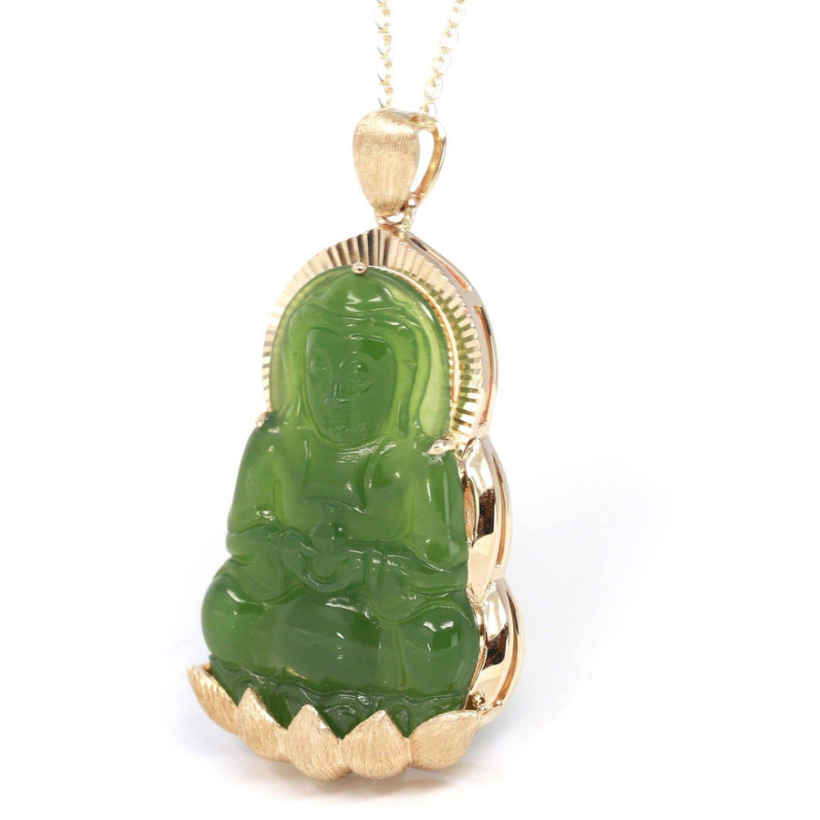 Baikalla Jewelry Gold Jade Pendant Baikalla™ 14K Yellow Gold Genuine Nephrite Green Jade GuanYin Pendant Necklace
