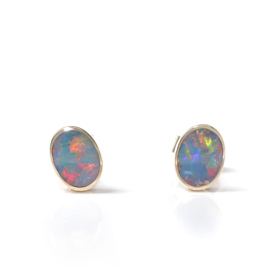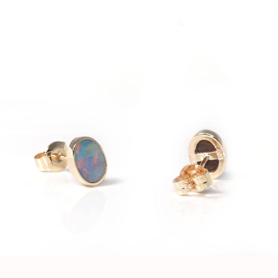 Baikalla™ 14k Yellow Gold Natural Oval Australian Blue Opal Bezel Set Earrings
