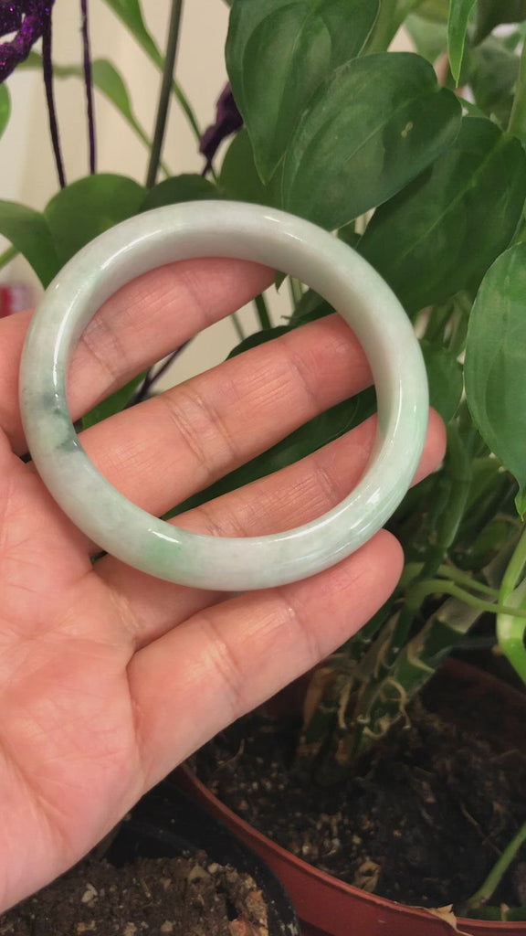 * DETAILS--- Green Genuine Burmese Jadeite Jade Bangle Bracelet.  All Baikalla Jewelry's Jade Bangles are guaranteed to be untreated. The jade texture is relatively fine with some patches of gorgeous green lavender colors throughout. Spots of the green is stunning as seen in the pictures. The texture is smooth and fine. With little cloudy spots. The color is truly mesmerizing. The Classic half-round style bracelet is comfortable. It's very luxurious, high-quality, and affordable. It's a high-quality gift for yourself or your love.