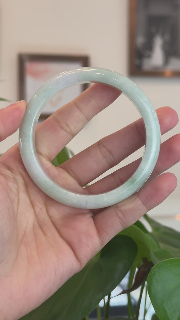 * DETAILS---Presenting our Genuine Burmese Jadeite Jade Bangle Bracelet, meticulously crafted with authentic Burmese White-Green Jadeite jade. The translucent texture of the jade exudes a captivating hue, creating a mesmerizing allure. With its smooth texture and stunning coloration, this Classic round style bracelet epitomizes elegance. Whether as a personal indulgence or a thoughtful gesture for a loved one, this bangle embodies the essence of uniqueness. Treat yourself or someone special to this exquisite piece, a token of affection that transcends time and style.
