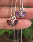 Baikalla™ Classic Sterling Silver Natural Amethyst Garnet Swan Pendant Necklace