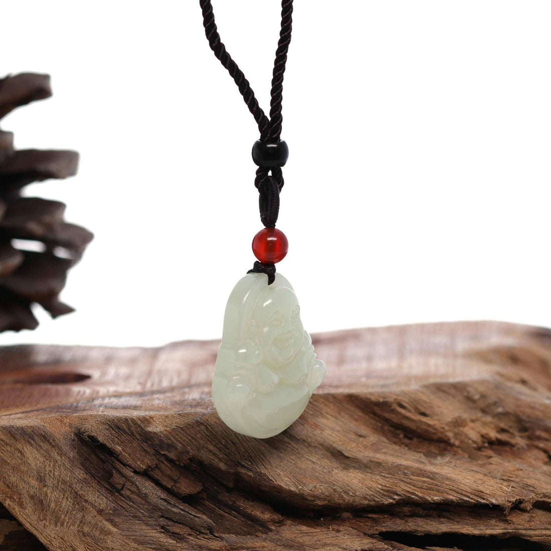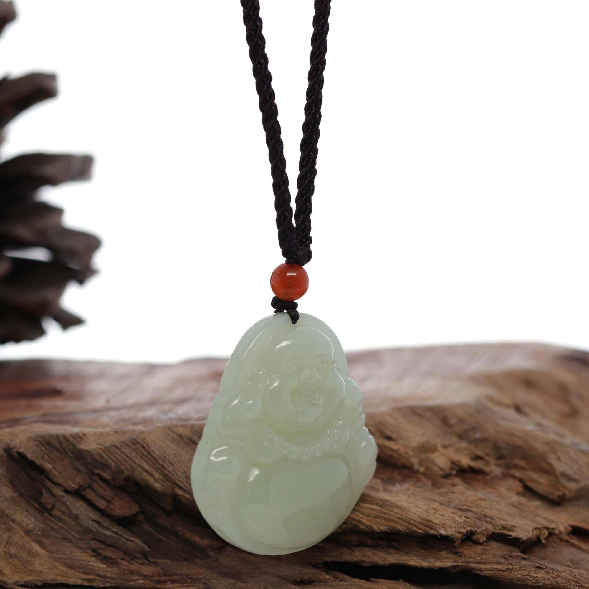 Baikalla Jewelry Jade Pendant Necklace Baikalla™ "Goddess of Compassion Buddha" Genuine White Jade Pendant Necklace