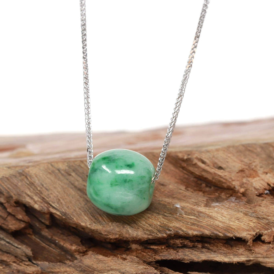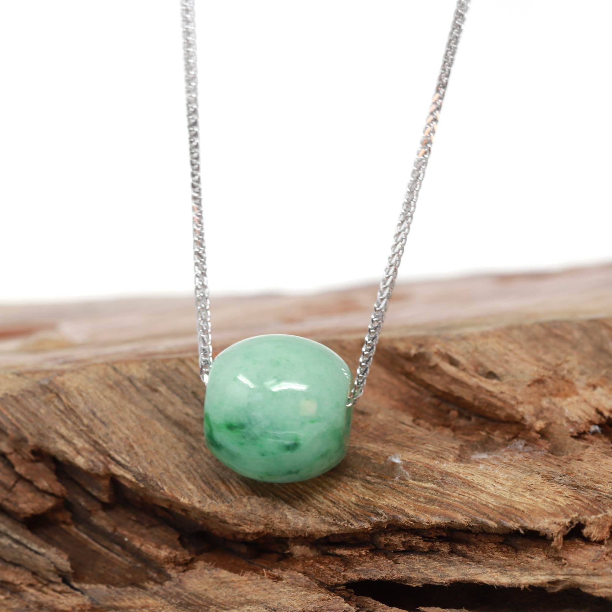 Design Concept--- The simple shape of a circle represents things such as happiness, wholeness, and prosperity. Or as Sotheby's auction house called a jade bangle. "Circle of Heaven". This necklace is made with very high-quality genuine blue-green Burmese jadeite jade. Which produces some of the finest in the world. Refined, exquisite. Very very slightly included. Gifting one of these is like wishing the best luck upon your family or loved ones. It's a perfect gift. ( Similar items sent at random )