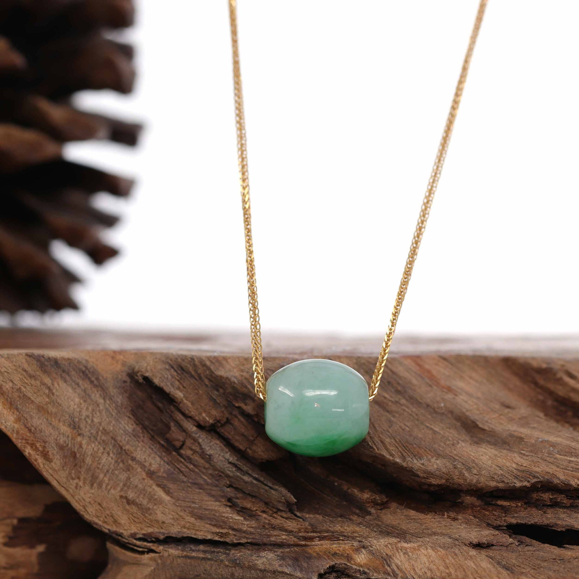 Baikalla™ "Good Luck Button" Necklace Rich Forest Green Jade Lucky TongTong Pendant Necklace