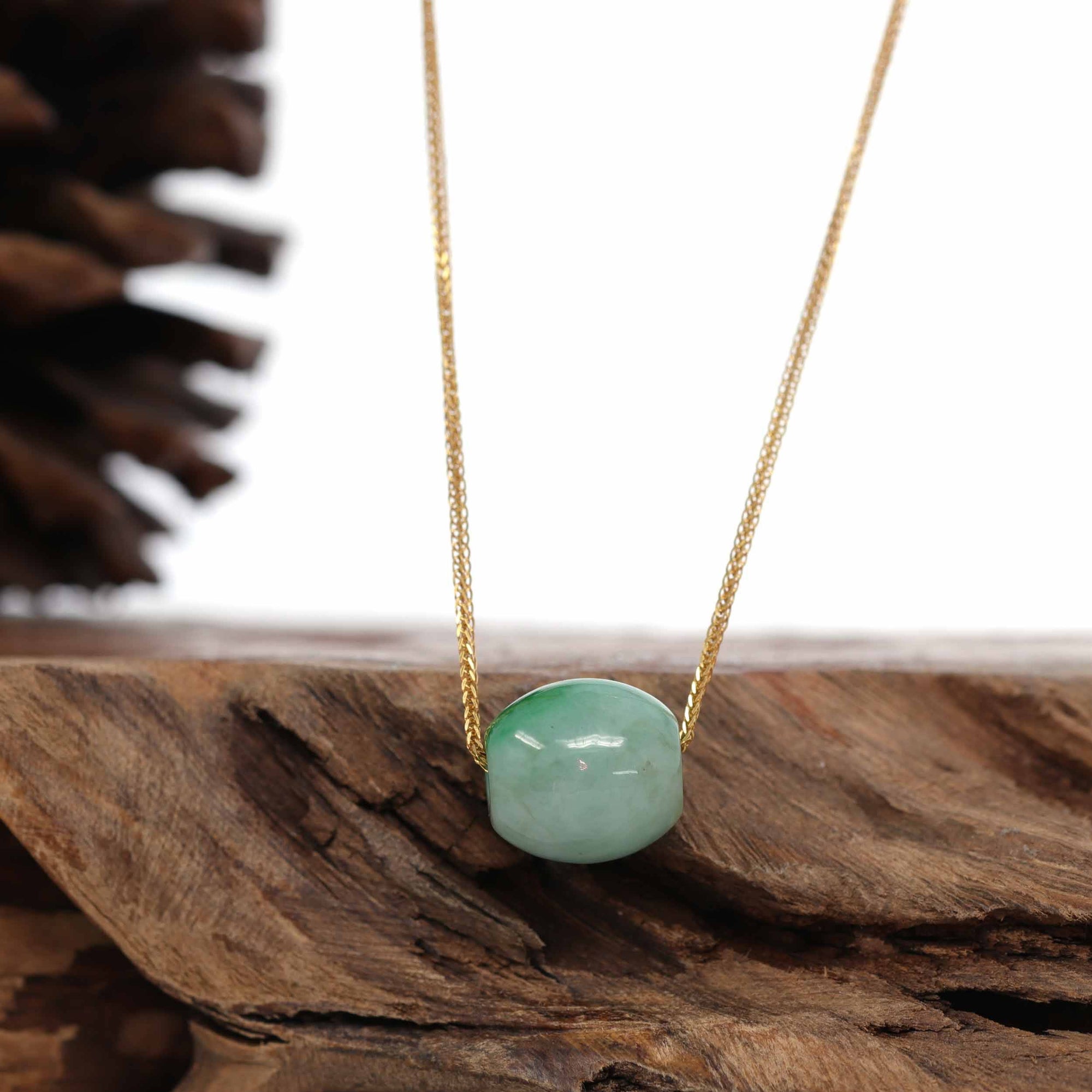 Design Concept--- The simple shape of a circle represents things such as happiness, wholeness, and prosperity. Or as Sotheby's auction house called a jade bangle. "Circle of Heaven". This necklace is made with very high-quality genuine rich forest green Burmese jadeite jade. Refined, exquisite. Very very slightly included. Gifting one of these is like wishing the best luck upon your family or loved ones. It's a perfect gift.