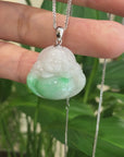 * Detail--- One-of-a-kind jadeite Buddha necklace, inspired by the figure of the traditional Buddha body. Combined with a modern bail. The piece is more than perfect for daily wear. Wearing items bearing the image of Buddha can remind us to be like Buddha in our daily life. Such items may also encourage us to be more patient in approach, kind in nature, and cultivate thoughts of peace and non-violence. Made with 100% genuine jadeite jade, untreated. Jadeite represents good luck, prosperity, and wealth. Handcrafted, with a lot of attention to detail.