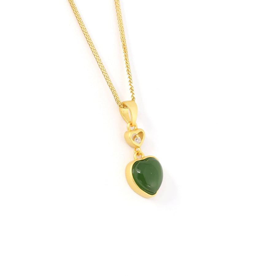 Baikalla Jewelry Jade Pendant Necklace Baikalla™ "Love Heart" Sterling Silver Green Jade Classic Love Pendant Necklace