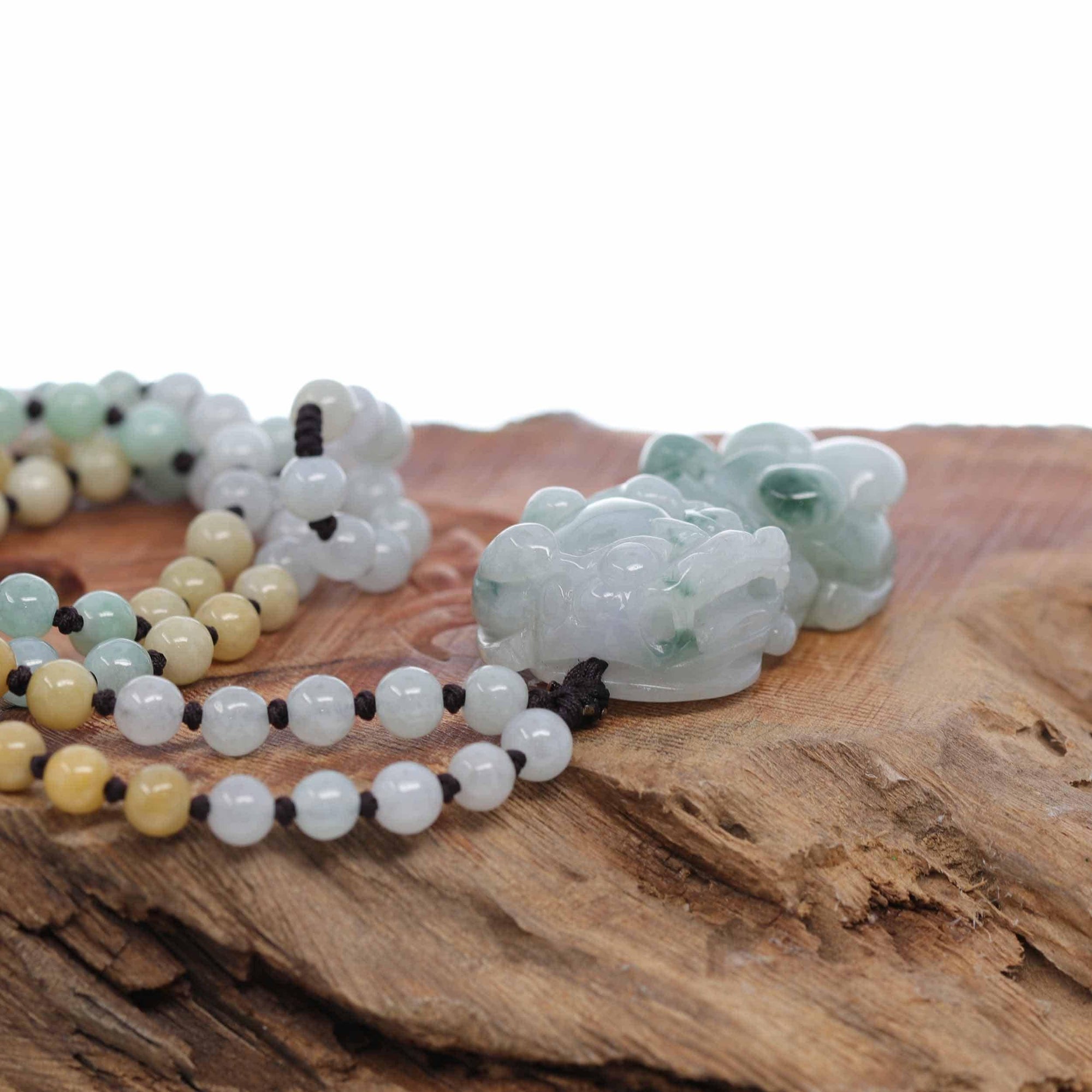 Baikalla™ Pi Xiu Genuine Burmese Blue Green Jadeite Jade PiXiu Pendant Necklace (FengShui Lucky)