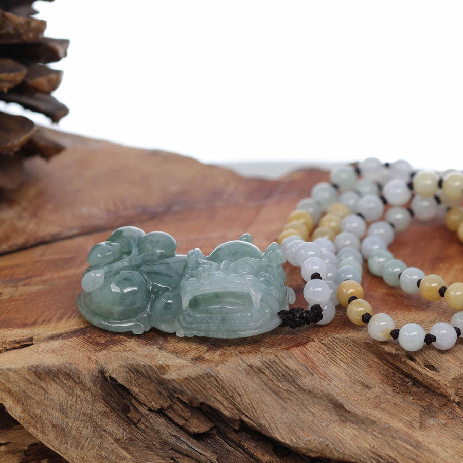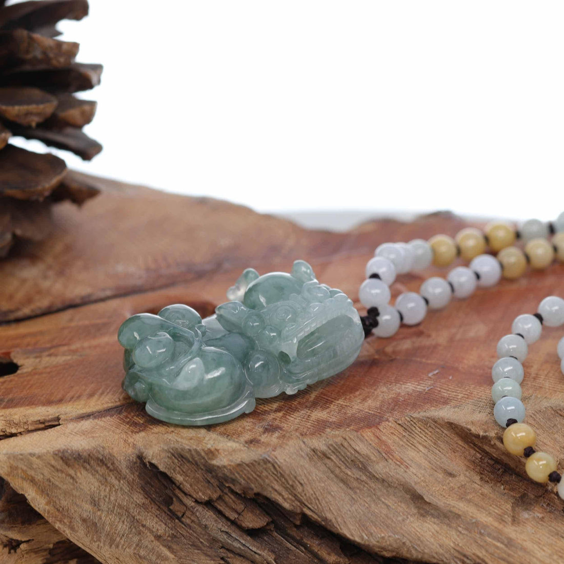 Baikalla™ Pi Xiu Genuine Burmese Blue Green Jadeite Jade PiXiu Pendant Necklace (FengShui Lucky)