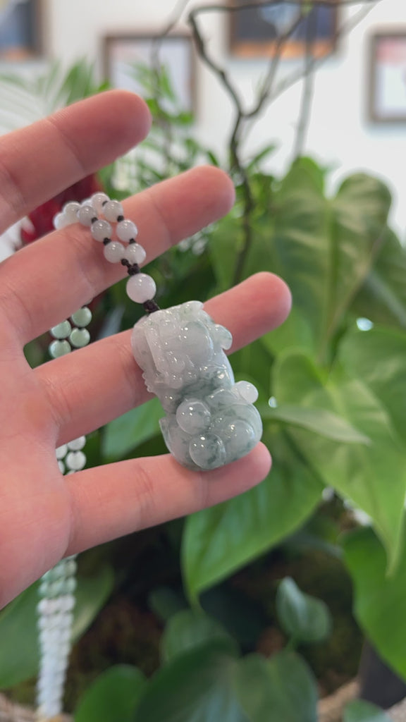 Baikalla™ Pi Xiu Genuine Burmese Blue Green Jadeite Jade PiXiu Pendant Necklace (FengShui Lucky)
