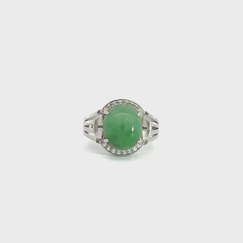 Baikalla™ Sterling Silver Natural Imperial Green Oval Jadeite Jade Ring With White Sapphire