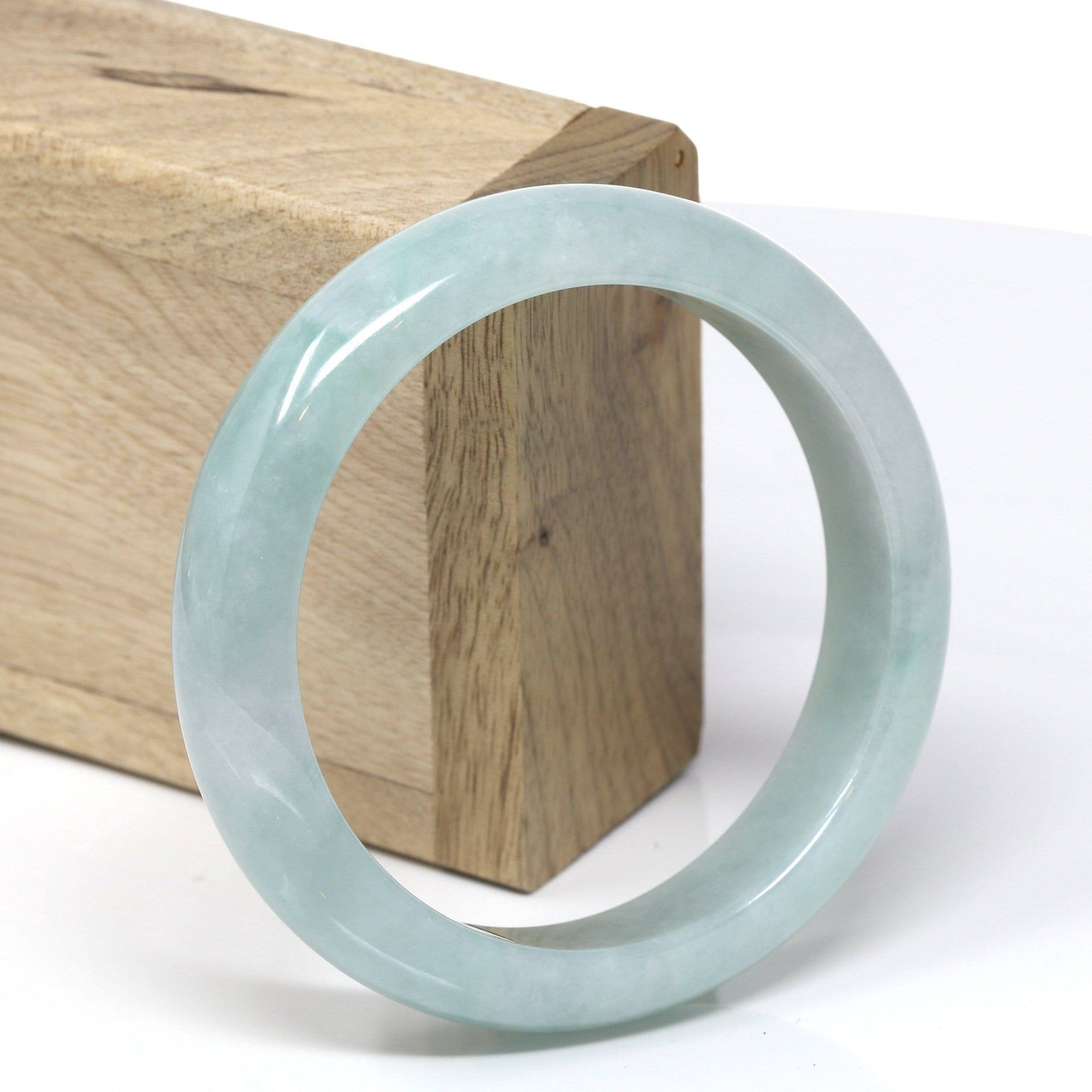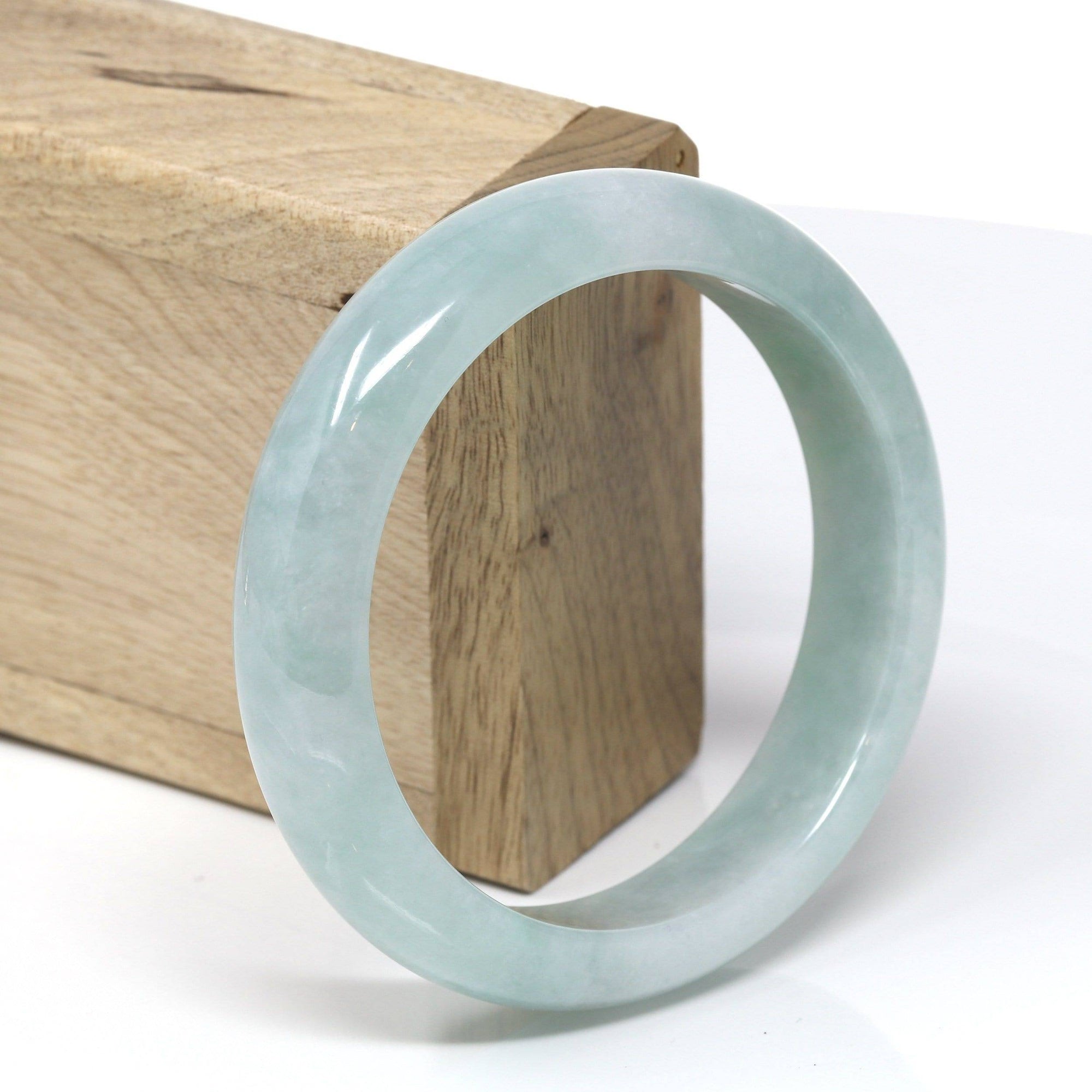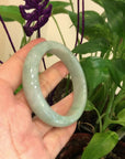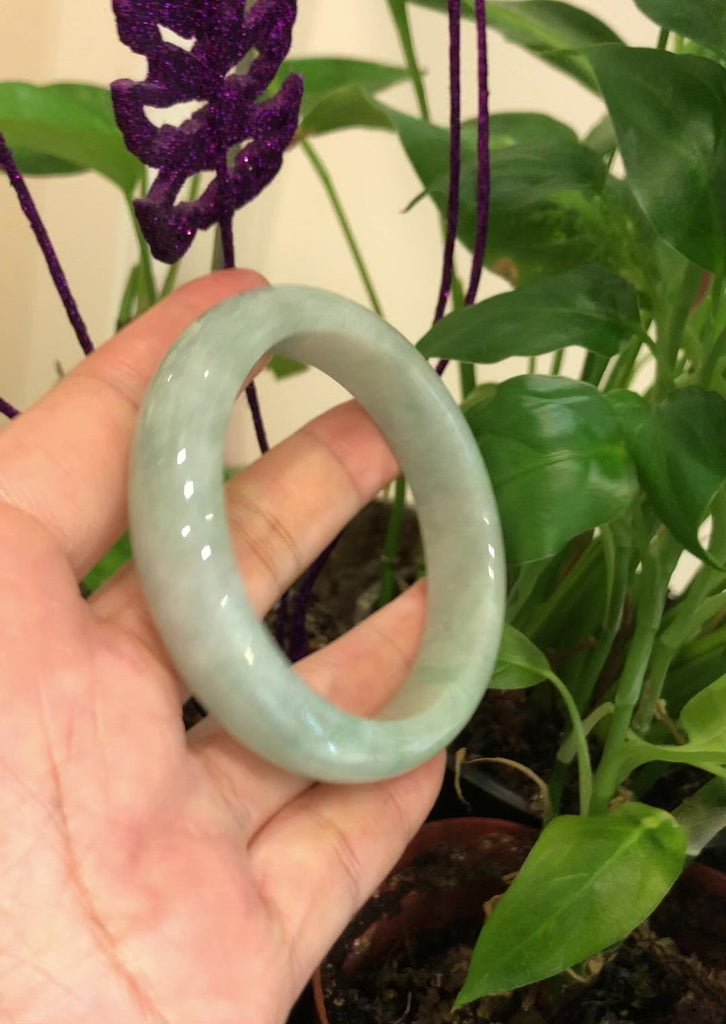 * DETAILS--- This natural Burmese Jadeite bangle is a beautiful light blue-green all throughout and beautiful patterns of green as seen in the pictures. The texture is very even throughout the bangle, very beautifully translucent under the light. This bangle is characterized by beautiful blue-green patches.  And very minor stone clouds but there are natural stone clouds. the bangle does have a beautiful, simple, luxurious look to it. Very good for daily wear. Jadeite jade is a tough stone, the hardness is 6.5-7 on the Mohs hardness scale. Making jade a perfect stone for a daily wear bangle. It.s a very good gift for you and your love.