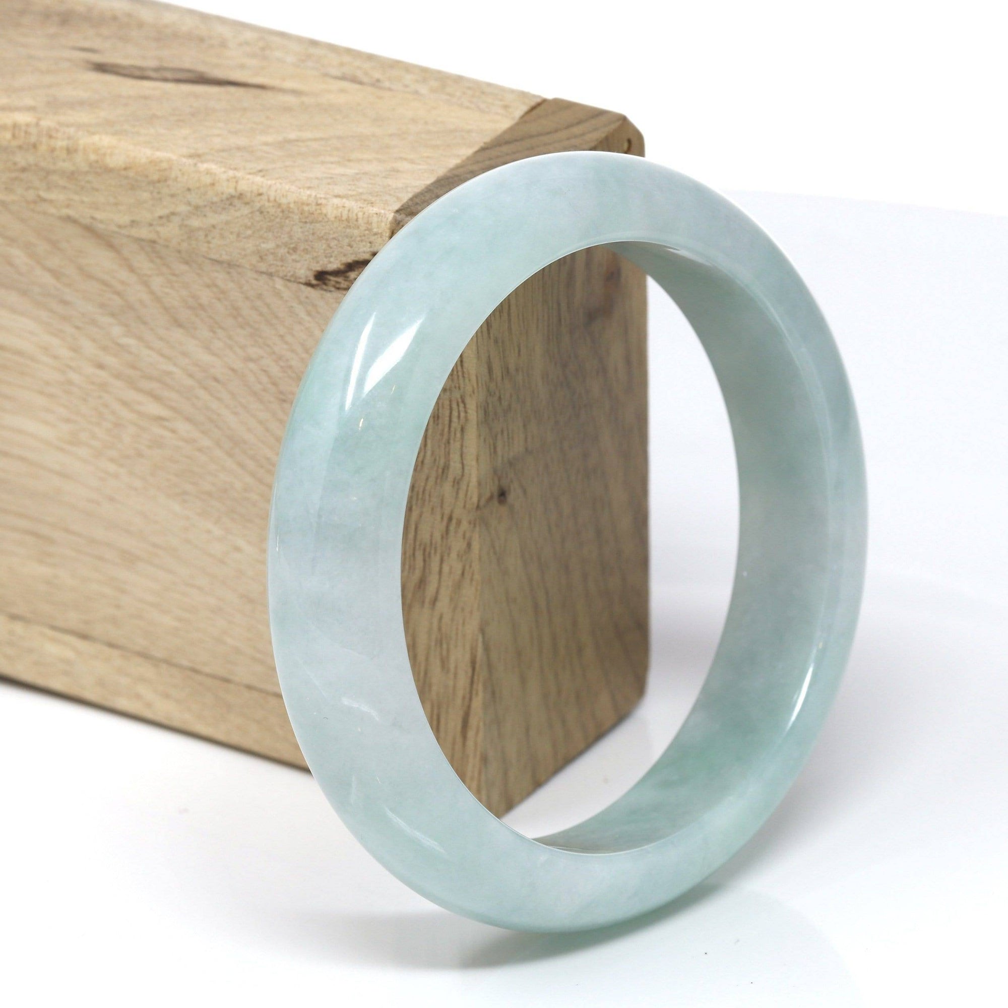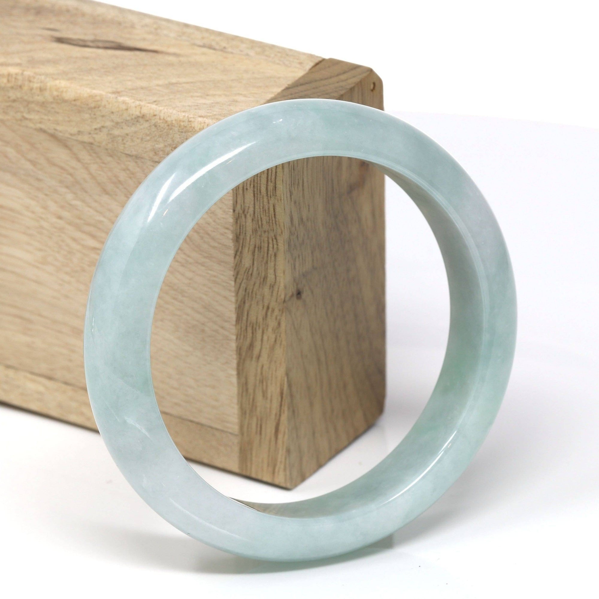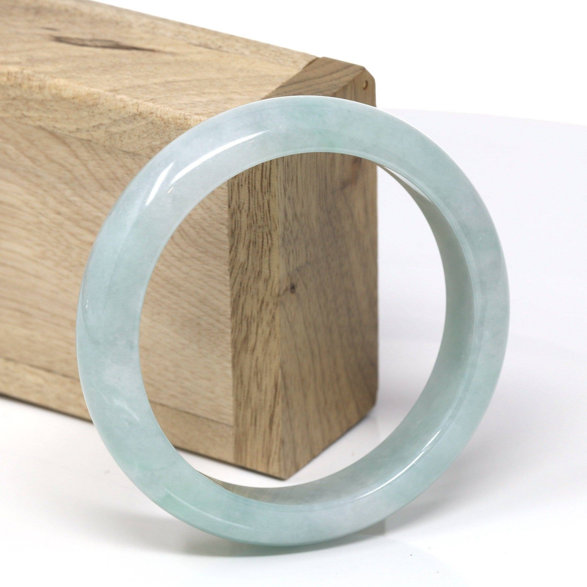 * DETAILS--- This natural Burmese Jadeite bangle is a beautiful light blue-green all throughout and beautiful patterns of green as seen in the pictures. The texture is very even throughout the bangle, very beautifully translucent under the light. This bangle is characterized by beautiful blue-green patches.  And very minor stone clouds but there are natural stone clouds. the bangle does have a beautiful, simple, luxurious look to it. Very good for daily wear. Jadeite jade is a tough stone, the hardness is 6.5-7 on the Mohs hardness scale. Making jade a perfect stone for a daily wear bangle. It.s a very good gift for you and your love.