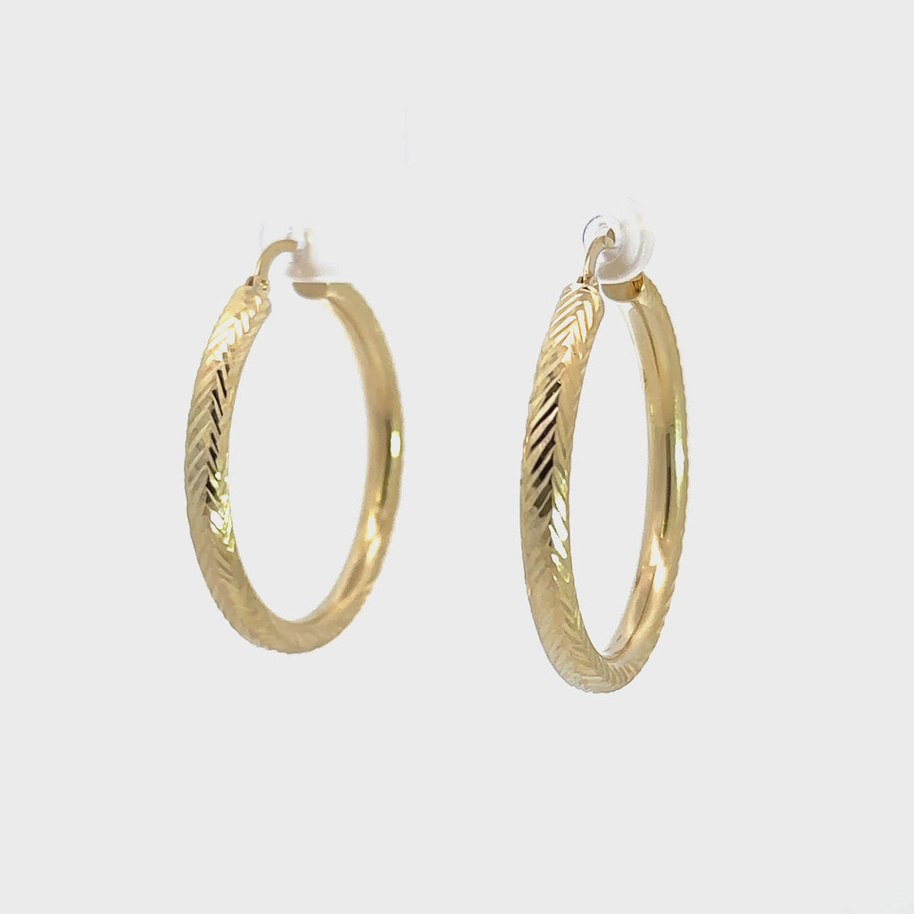 Baikalla 10k Gold Hallow Dangle Diamond Cut Hoop Earrings