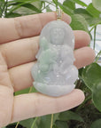 *Design concept--- Crafted from authentic Burmese jadeite jade, this exquisite pendant showcases the Goddess of Compassion, Guan Yin, in remarkable detail. The excellent craftsmanship highlights a harmonious blend of lavender and vibrant green hues, making it truly one-of-a-kind. The bail is made with 14k gold, dazzled with diamonds. Great size for both men and women. Known for its durability, jadeite is also believed to bring good luck. This pendant makes a thoughtful and meaningful gift for yourself or someone special.