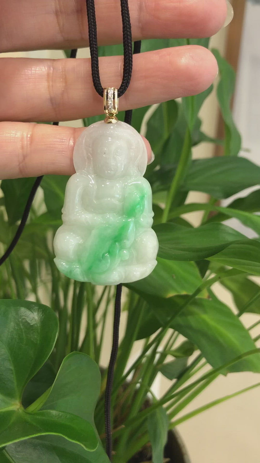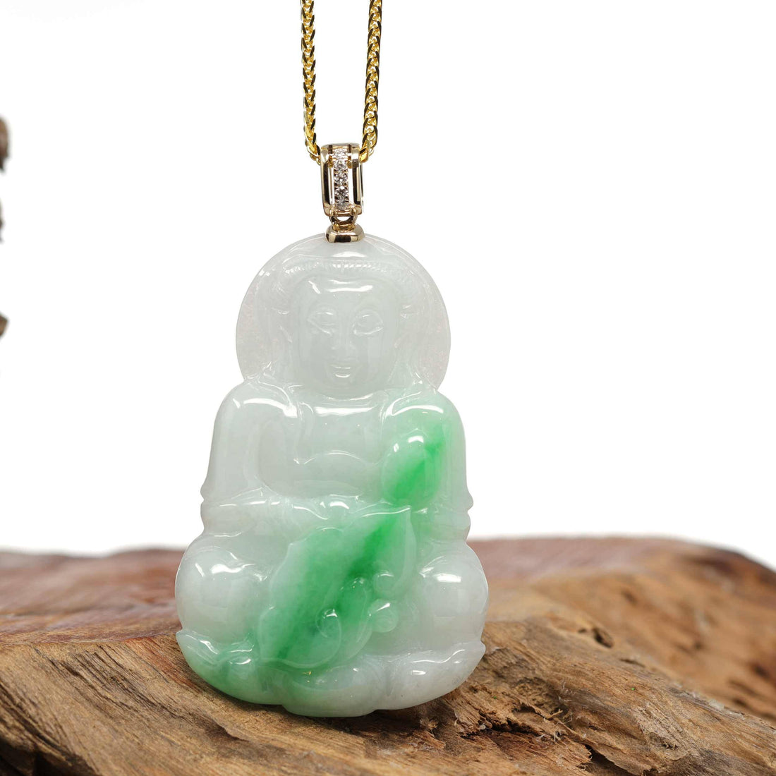Baikalla 14k "Goddess of Compassion" Genuine Burmese Jadeite Jade Guanyin Necklace With Diamond Bail