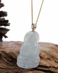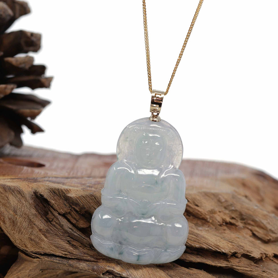 Baikalla 14k "Goddess of Compassion" Genuine Burmese Jadeite Jade Guanyin Necklace With Good Luck Design