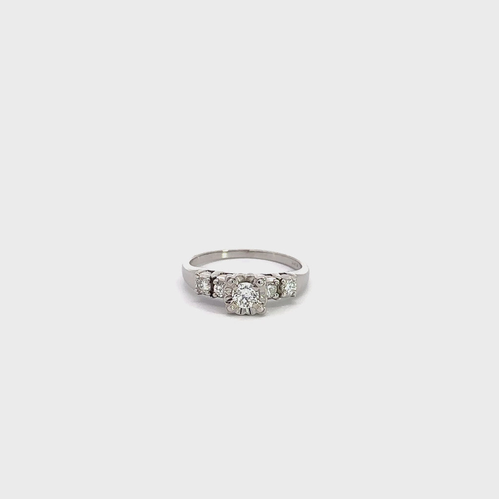 Baikalla 14k White Gold Five Diamond Engagement Ring Set