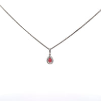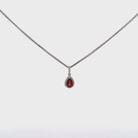 Baikalla 14k White Gold Genuine AAA Tear Drop Garnet Pendant Necklace With Diamonds