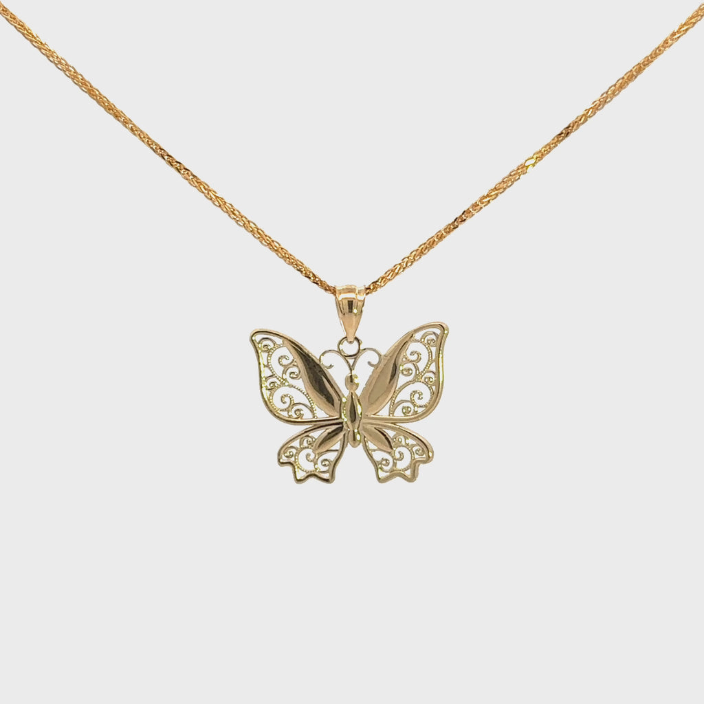 * INTRODUCTION--- Introducing the Baikalla 14k Yellow Gold Butterfly Pendant Necklace, a captivating display of grace and beauty. At the heart this design is a meticulously crafted butterfly pendant, fashioned from lustrous 14k yellow gold. The delicate filigree texture adds a touch of intricacy and femininity, creating a visual masterpiece. Elevate your style with the Baikalla 14k Yellow Gold Butterfly Pendant Necklace – a symbol of femininity, transformation, and the enduring beauty.