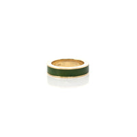 Baikalla 14k Yellow Gold Forest Green Natural Nephrite Jade Inlay Men's Wedding Ring