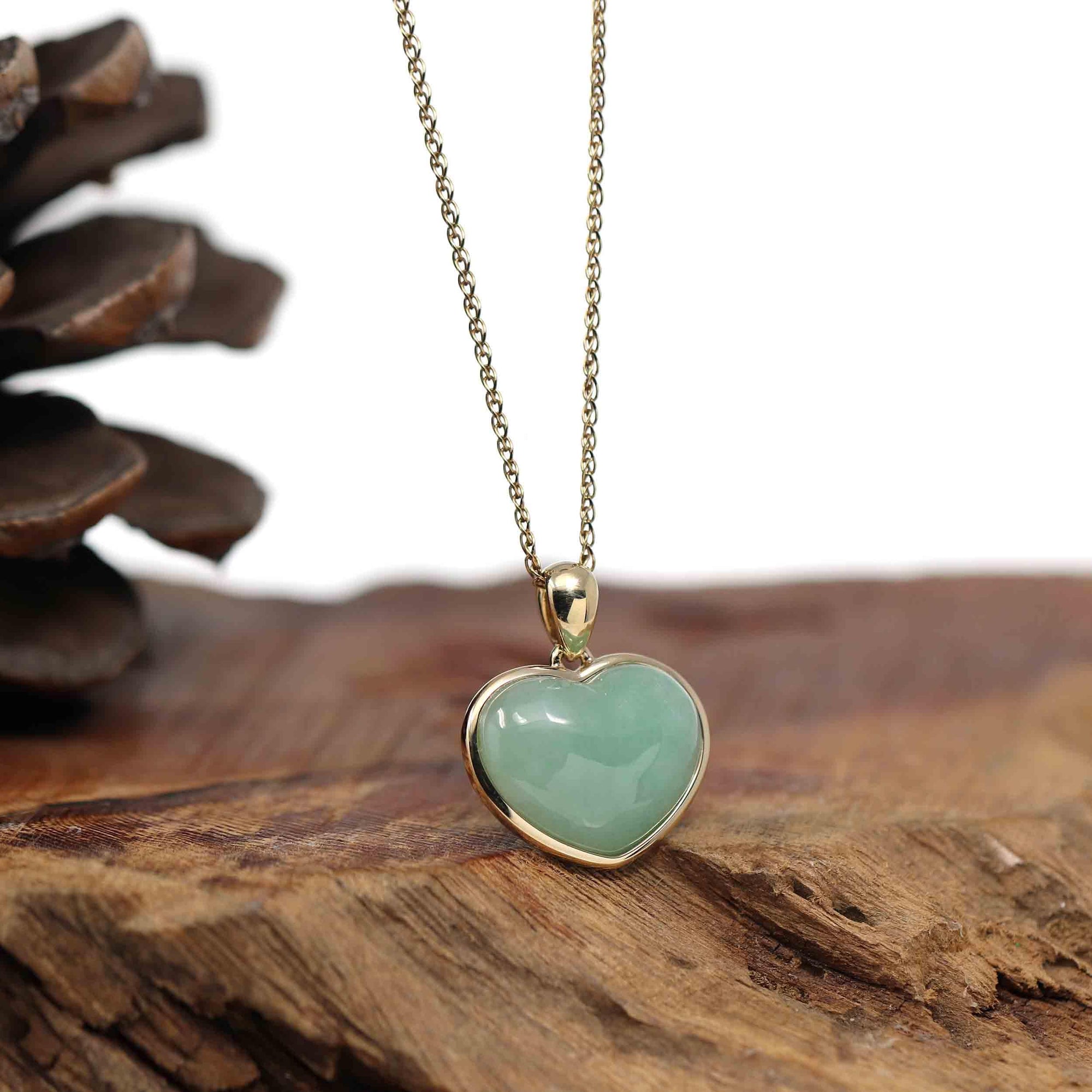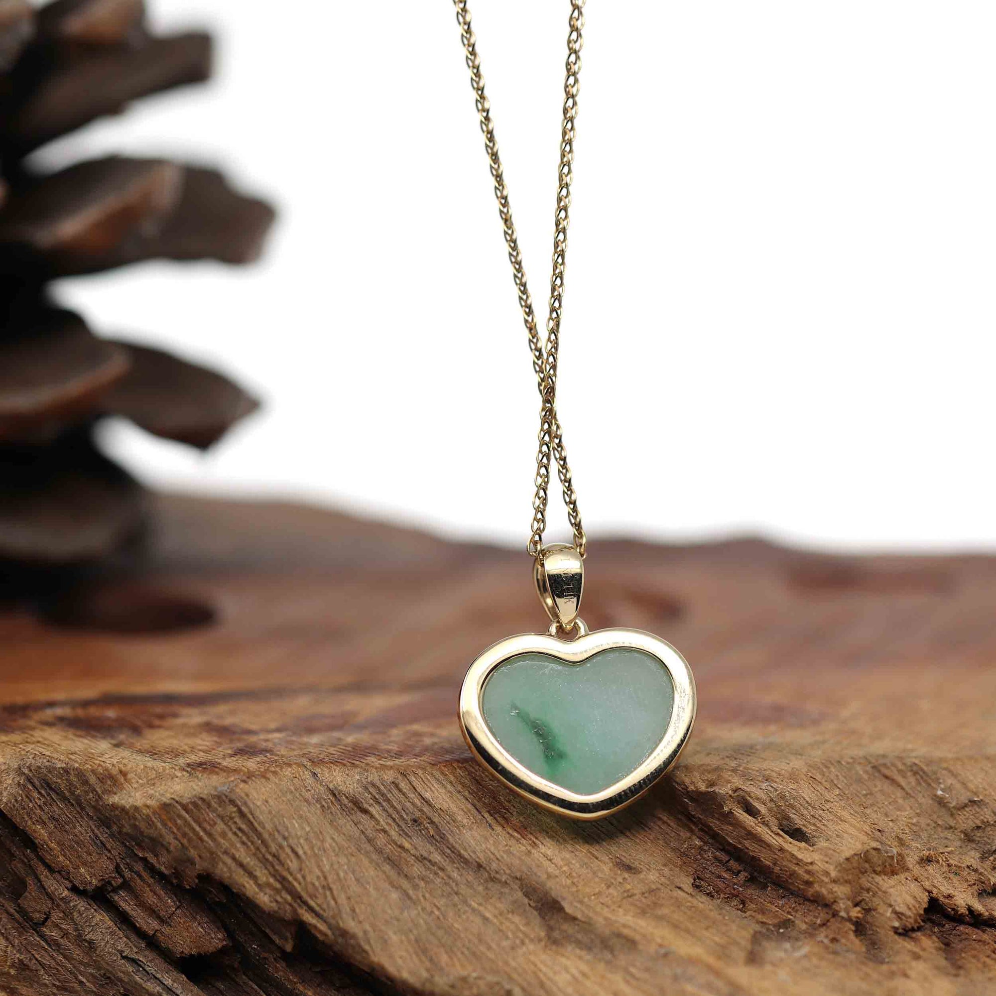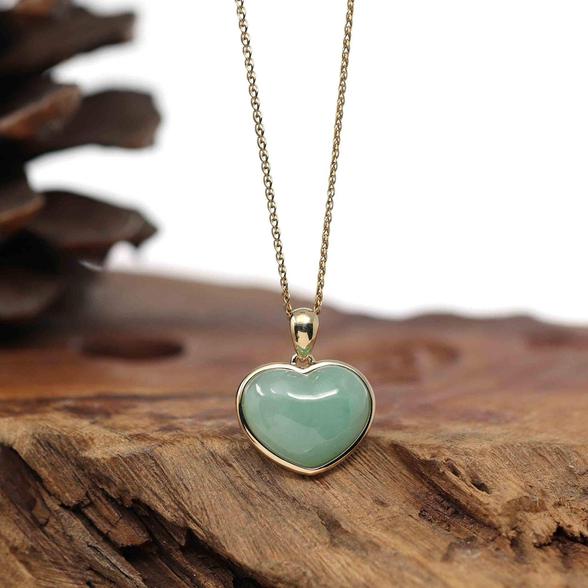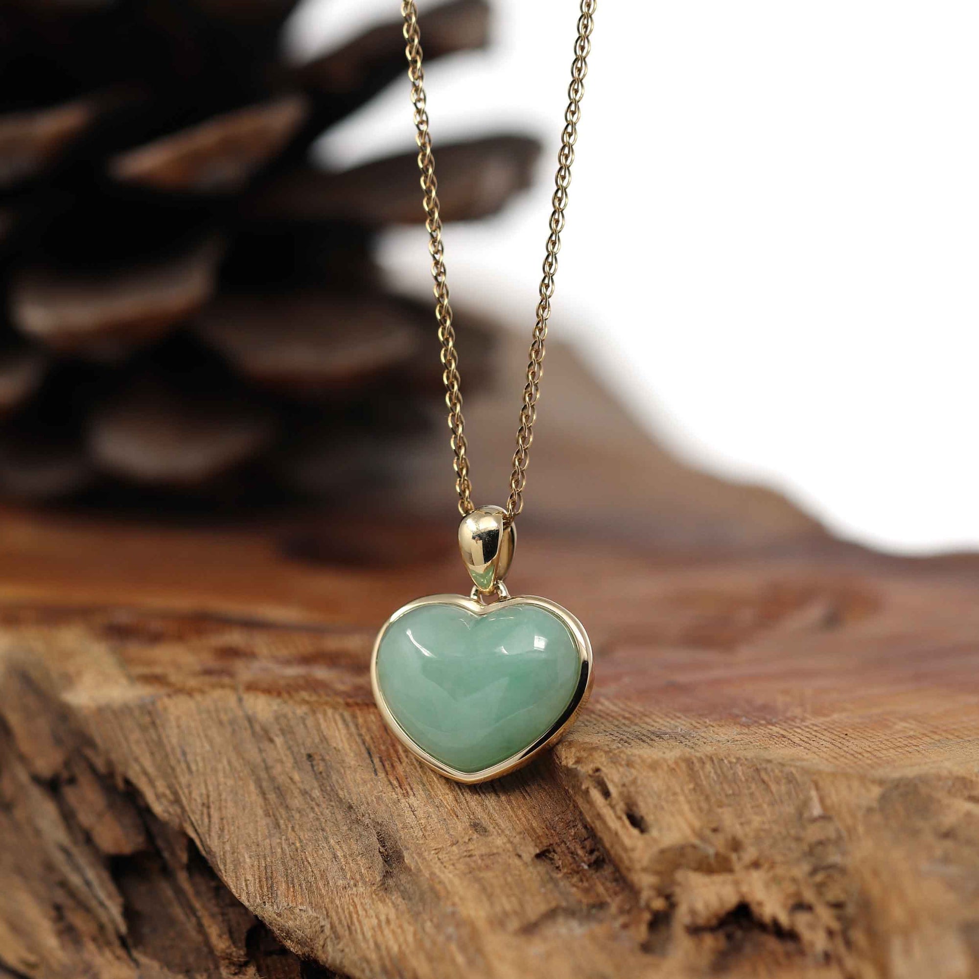 * DESIGN CONCEPT--- The Baikalla 14K Yellow Gold Genuine Burmese Green Jadeite Jade Heart Pendant is a stunning example of craftsmanship, timeless appeal of Burmese Jadeite Jade, and 14k gold. Made with rare, high-quality genuine Burmese jadeite jade, the design was inspired by the simplistic yet elegant motif of