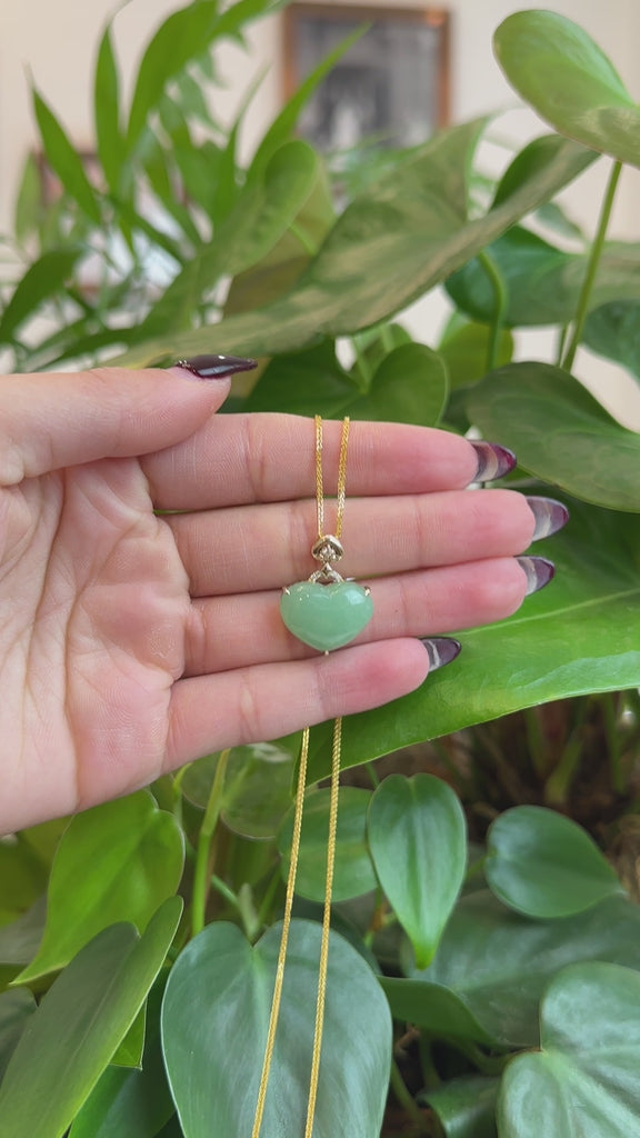 * DESIGN CONCEPT--- The Baikalla 14K Yellow Gold Genuine Burmese Green Jadeite Jade Heart Pendant is a stunning example of craftsmanship, timeless appeal of Burmese Jadeite Jade, and VS1 diamonds. Made with rare, high-quality genuine ice Burmese jadeite jade, the design was inspired by the simplistic yet elegant motif of a heart. Love, balance, and positive energy is the focal point of this elegant high end necklace. Elevate your jewelry collection with a piece of jewelry that symbolizes love, luxury, and contemporary design.