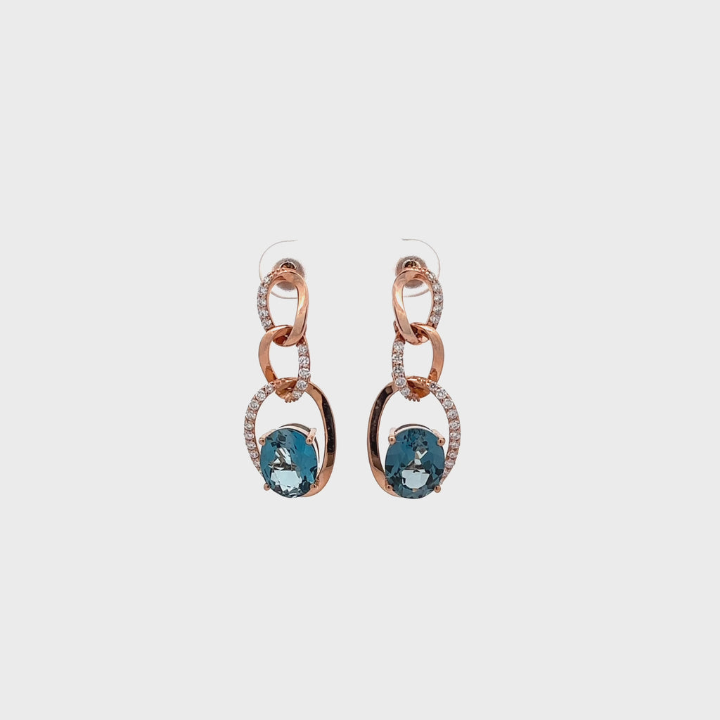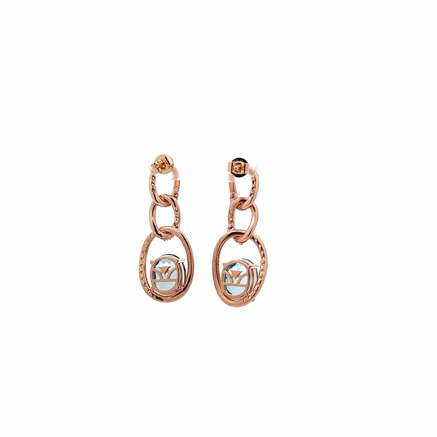Baikalla 14K Rose Gold Oval AAA Topaz Dangle Earrings With VS1 Diamond