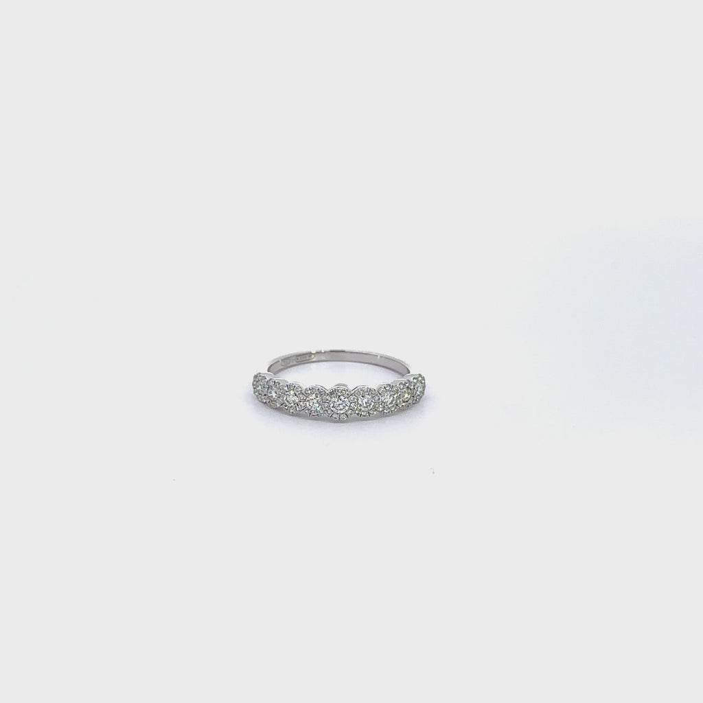 * Design concept--- Introducing the 18k White Gold Diamond Anniversary Ring, a timeless masterpiece of everlasting love. Crafted with meticulous detail, the band of the ring is made with 18k white gold, a perfect representation of commitment. Several exquisite diamonds pull your focus with a unique halo design. This ring is more than just a piece of jewelry; it's a promise, of everlasting love and passion. Celebrate your greatest journey of true love with this Baikalla diamond engagement ring.